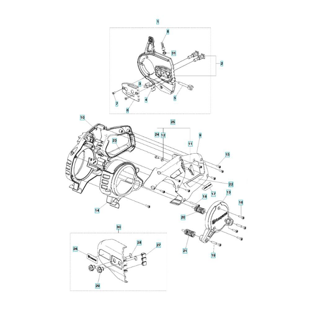 The Cover Assembly for the Husqvarna K6500 Chain II Concrete Cutter is designed to protect critical components during operation. This genuine Husqvarna part ensures durability and reliability, safeguarding the machine from dust and debris. Essential for maintaining optimal performance, it is a key component in the cutter's protective system.