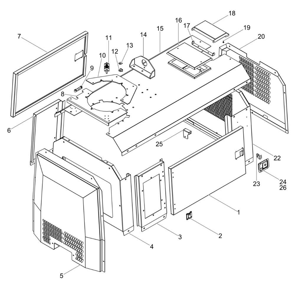 The Cover Assembly for the Wacker LTS7K Lighting Tower is designed to protect and enhance the functionality of your lighting equipment. This assembly includes essential components that safeguard the tower from environmental elements, ensuring optimal performance and longevity. Genuine Wacker Neuson parts are used to maintain the integrity and reliability of the lighting tower.