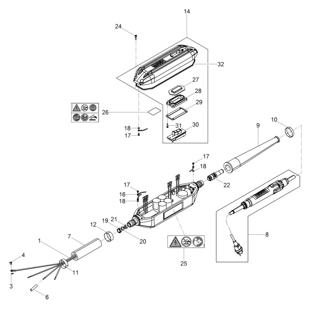 The Protective Hose Cover Assembly for the Wacker IRFU 65/120 Vibrator is designed to safeguard the hose during operation, ensuring durability and longevity. This assembly includes essential components that protect against wear and tear, maintaining the vibrator's efficiency. Available in various configurations to suit different operational needs.
