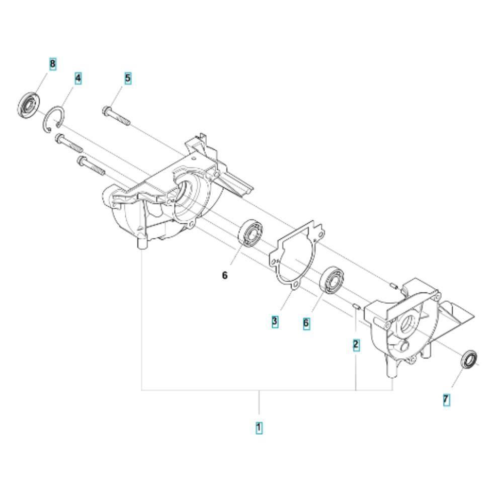 The Crankcase Assembly for the Husqvarna 122R Brushcutter is designed to house and protect the engine's moving parts, ensuring optimal performance. This genuine Husqvarna component is essential for maintaining the integrity of the brushcutter, reducing wear and tear, and extending its service life. Available components include gaskets, seals, and fasteners.