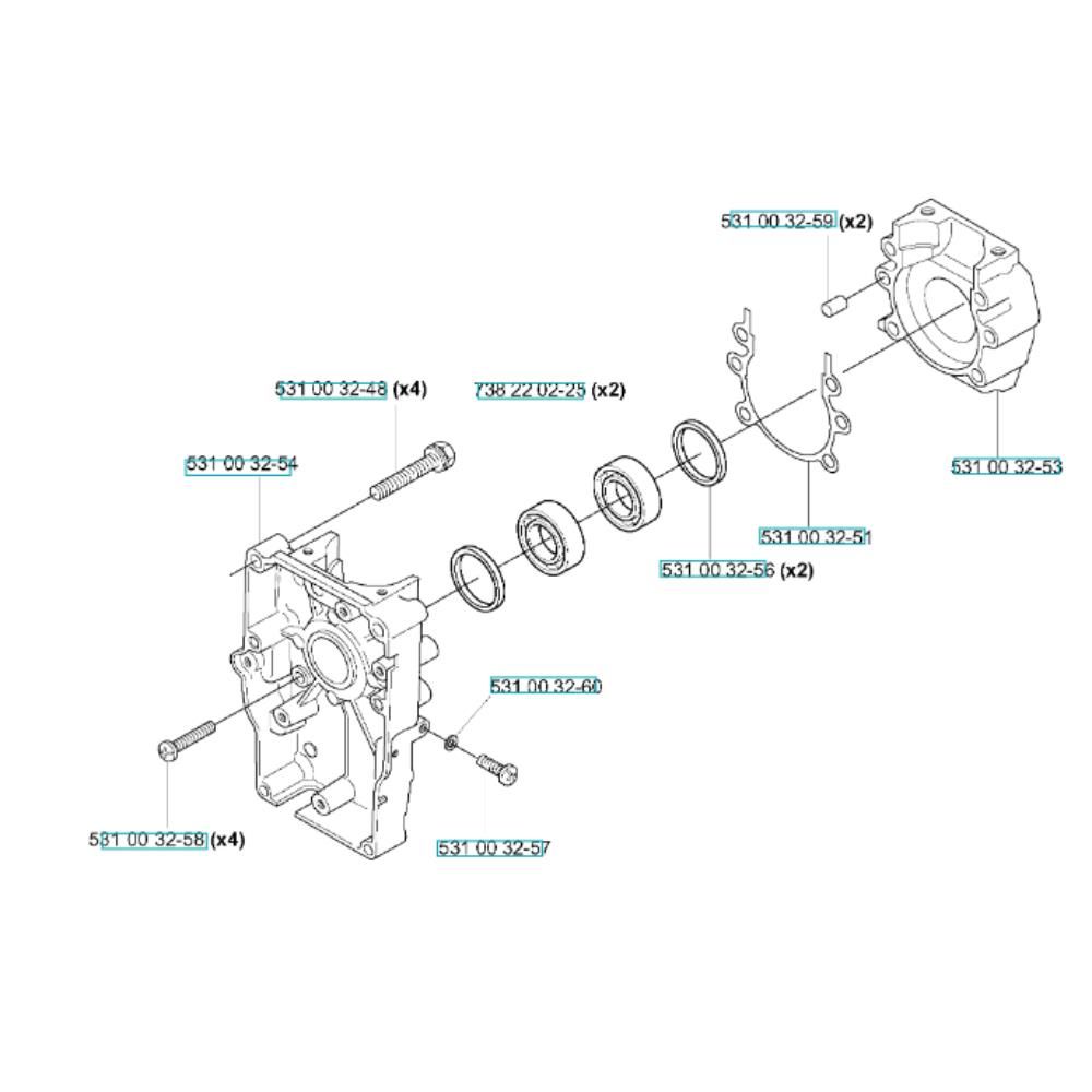The Crankcase Assembly for the Husqvarna 145 BT Blower is designed to house and protect the engine's moving parts, ensuring optimal performance and longevity. This assembly includes components such as gaskets, seals, and bearings, which are crucial for maintaining engine integrity and preventing leaks. Genuine Husqvarna parts ensure compatibility and reliability, making them ideal for routine maintenance and repairs.