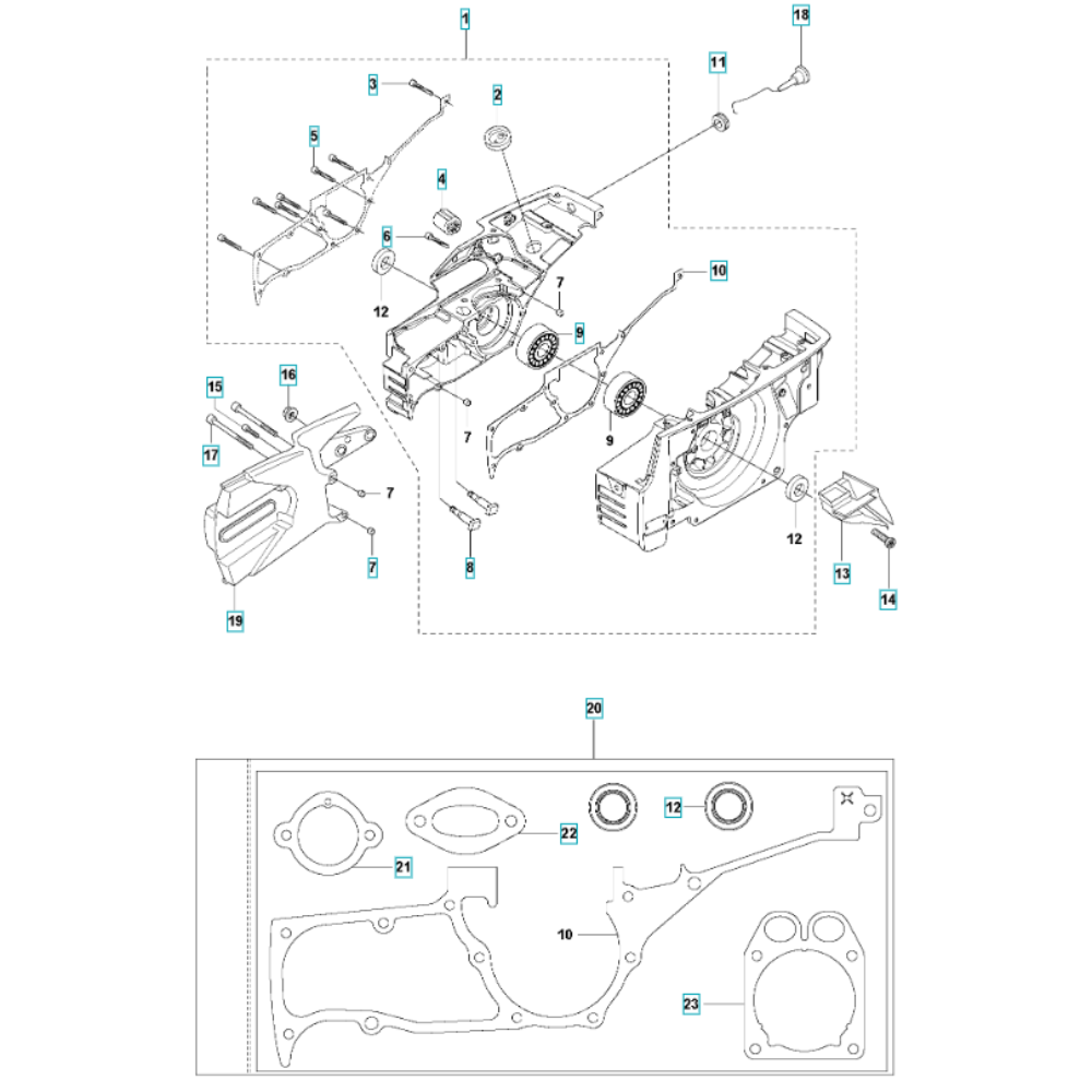 The Crankcase Assembly for the Husqvarna K1270 I Disc Cutter is essential for housing and protecting the engine components. This genuine Husqvarna part ensures optimal performance and longevity of your disc cutter. The assembly includes key components such as gaskets, seals, and fasteners, designed to withstand the rigours of heavy-duty cutting tasks.