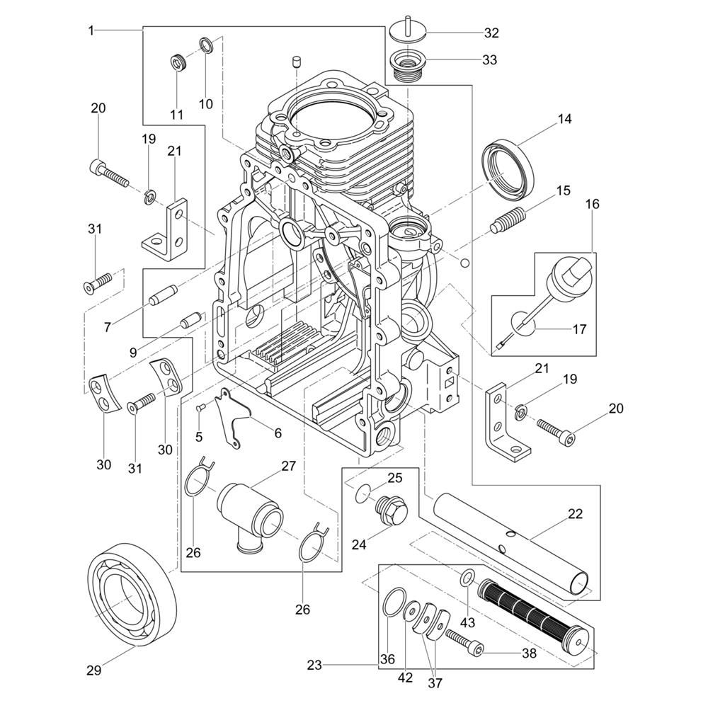 The Crankcase Assembly for the Wacker DPS2050H Plate Compactor is essential for housing the engine's moving parts, ensuring optimal performance and longevity. This assembly includes key components such as gaskets, seals, and bearings, which work together to maintain engine integrity and efficiency. Designed specifically for the Wacker Neuson Forward Plate Compactor, it supports reliable operation in demanding conditions.