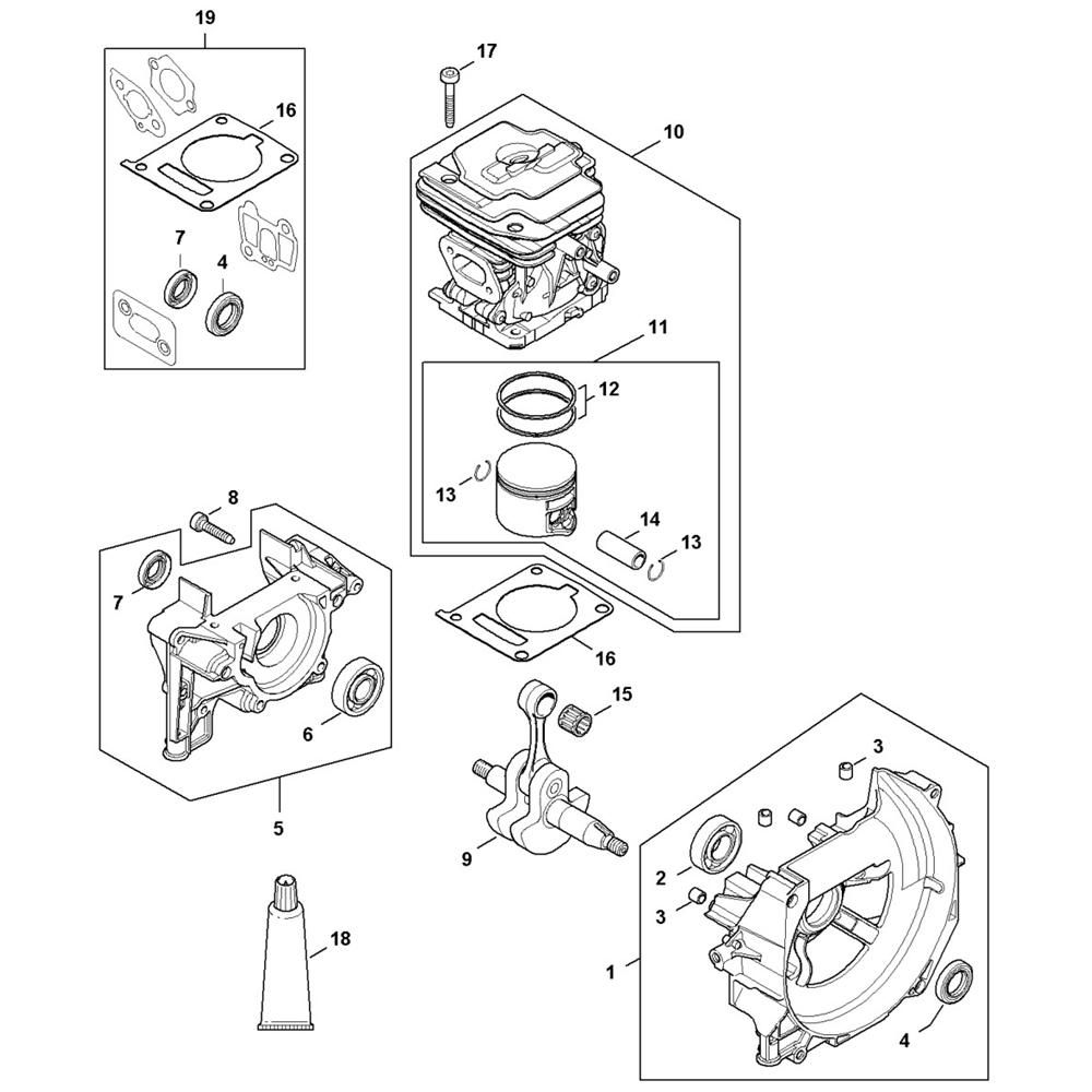 The Crankcase and Cylinder Assembly for the Stihl FS461 C-EM Clearing Saw is designed to ensure optimal engine performance and longevity. This assembly includes key components such as the crankcase and cylinder, which are vital for maintaining engine compression and efficiency. Genuine Stihl parts ensure compatibility and reliability for demanding clearing tasks.