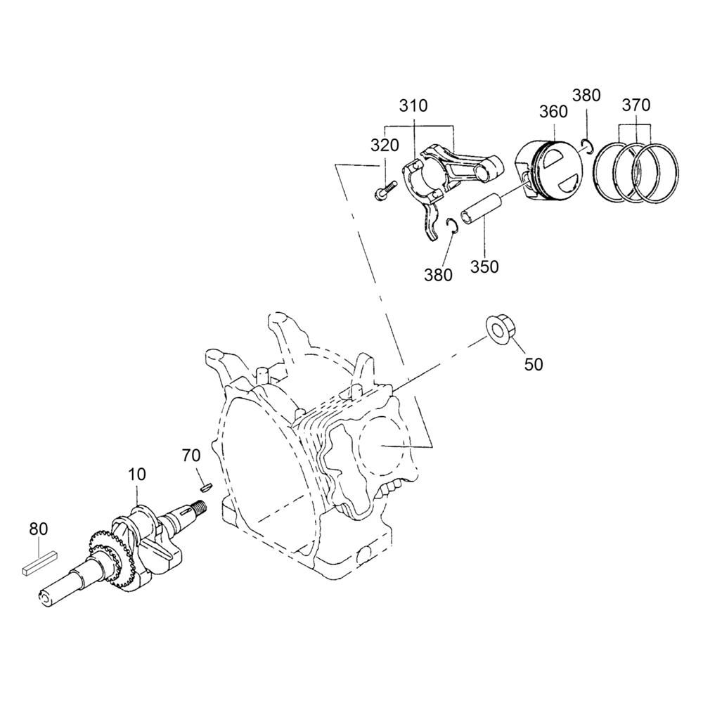 The Crankshaft and Piston Assembly for the Wacker WM 130 Engine includes key components essential for engine operation. This assembly ensures smooth power transfer and efficient combustion. Genuine Wacker Neuson parts, such as pistons, rings, and connecting rods, are designed for durability and optimal performance. Suitable for maintenance and repair tasks, these components help maintain engine reliability.