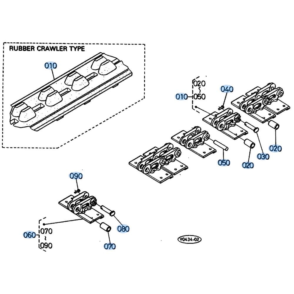 The Crawler Assembly for the Kubota KH36 Mini Excavator includes essential components designed to ensure optimal traction and stability. This assembly is crucial for maintaining the machine's mobility and efficiency on various terrains. Typical components include tracks, rollers, and idlers, all engineered to withstand demanding conditions and extend the excavator's service life.