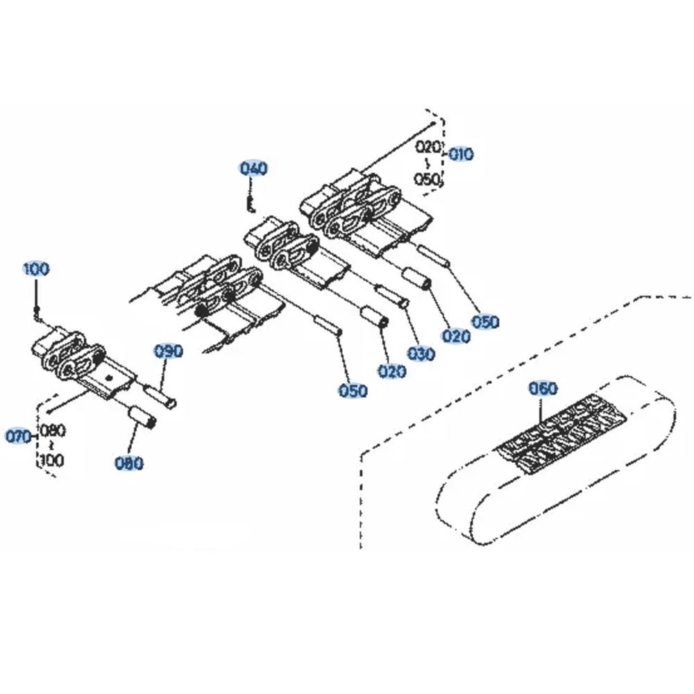 The Crawler Assembly for the Kubota KH51 Mini Excavator includes essential components to ensure optimal performance and durability. This assembly is crucial for the machine's mobility and stability, featuring parts such as tracks, rollers, and sprockets. Designed to withstand demanding conditions, it supports efficient excavation and construction tasks.