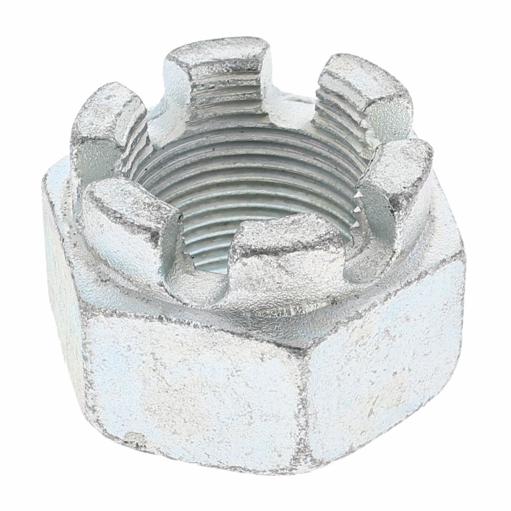 - Castellated crown design accepts a split pin for positive anti-vibration locking