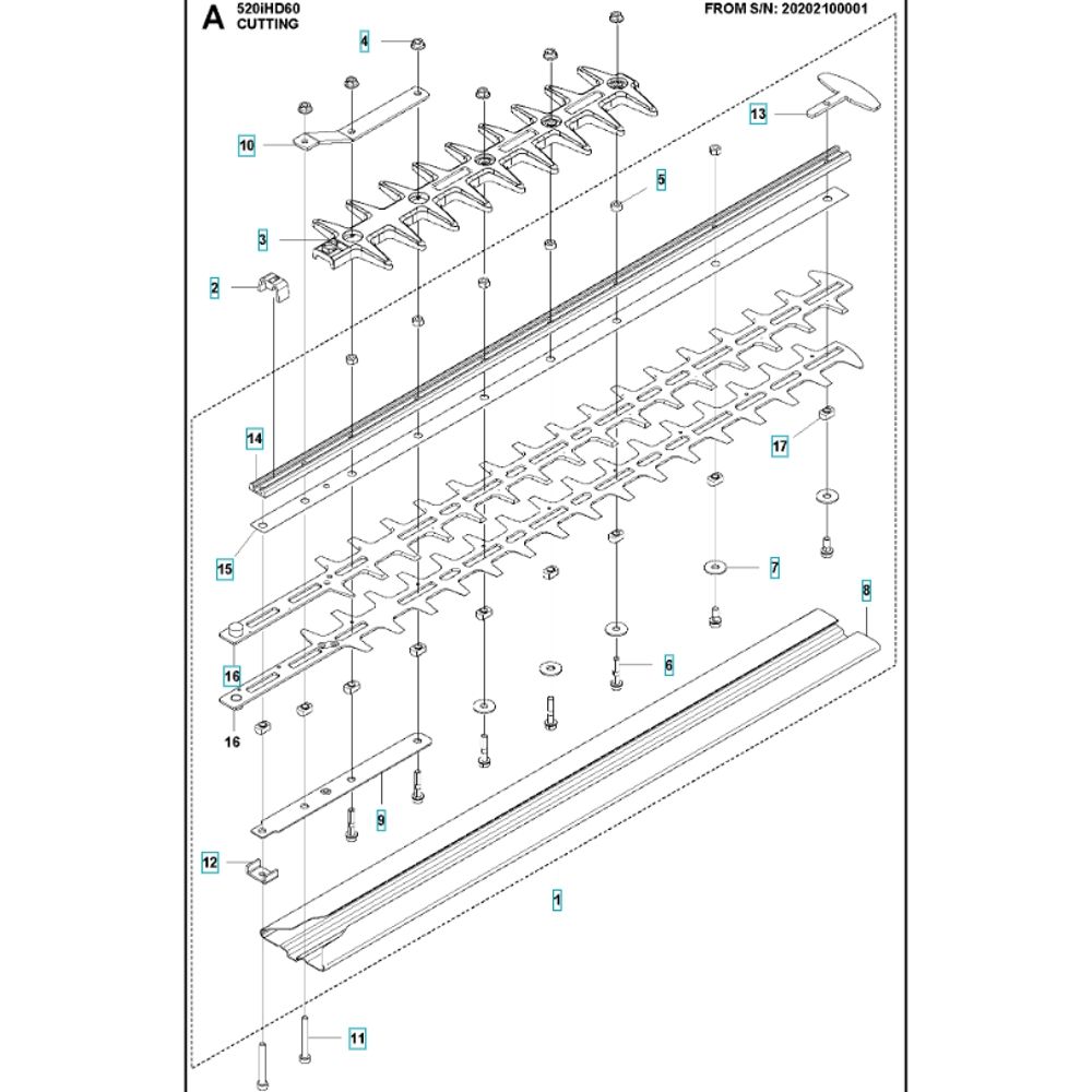 Cutting Equipment for the Husqvarna 520iHD60 Hedgetrimmer includes essential components designed to ensure optimal performance and longevity. These genuine spare parts are crafted to fit seamlessly, providing reliable operation and efficient trimming. Options are available to suit different maintenance needs, ensuring your hedgetrimmer remains in top condition.