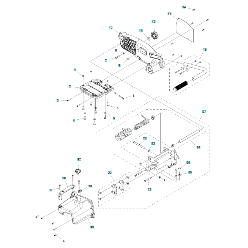 The Cutting Head Assembly for the Husqvarna TS 90 Masonry Saw is designed to ensure precise and efficient cutting performance. This assembly includes key components such as blades, guards, and tensioners, which work together to maintain optimal operation. Suitable for various masonry applications, it supports the saw's functionality and longevity.