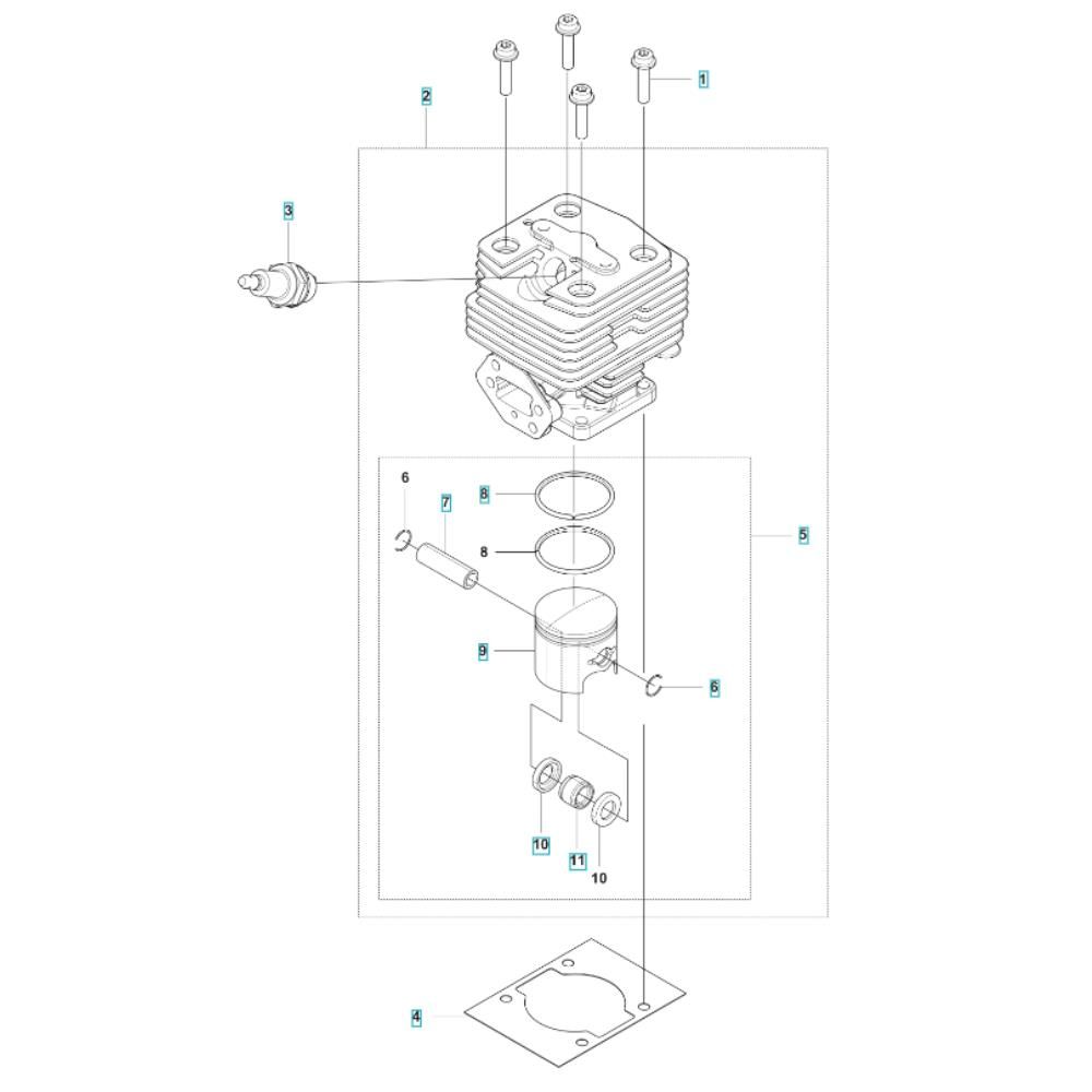 The Cylinder Assembly for the Husqvarna 143RST Brushcutter is essential for maintaining optimal engine performance. This assembly includes components that ensure efficient combustion and power delivery, such as pistons, rings, and gaskets. Designed for durability, these genuine Husqvarna parts help extend the life of your brushcutter by providing reliable operation in demanding conditions.