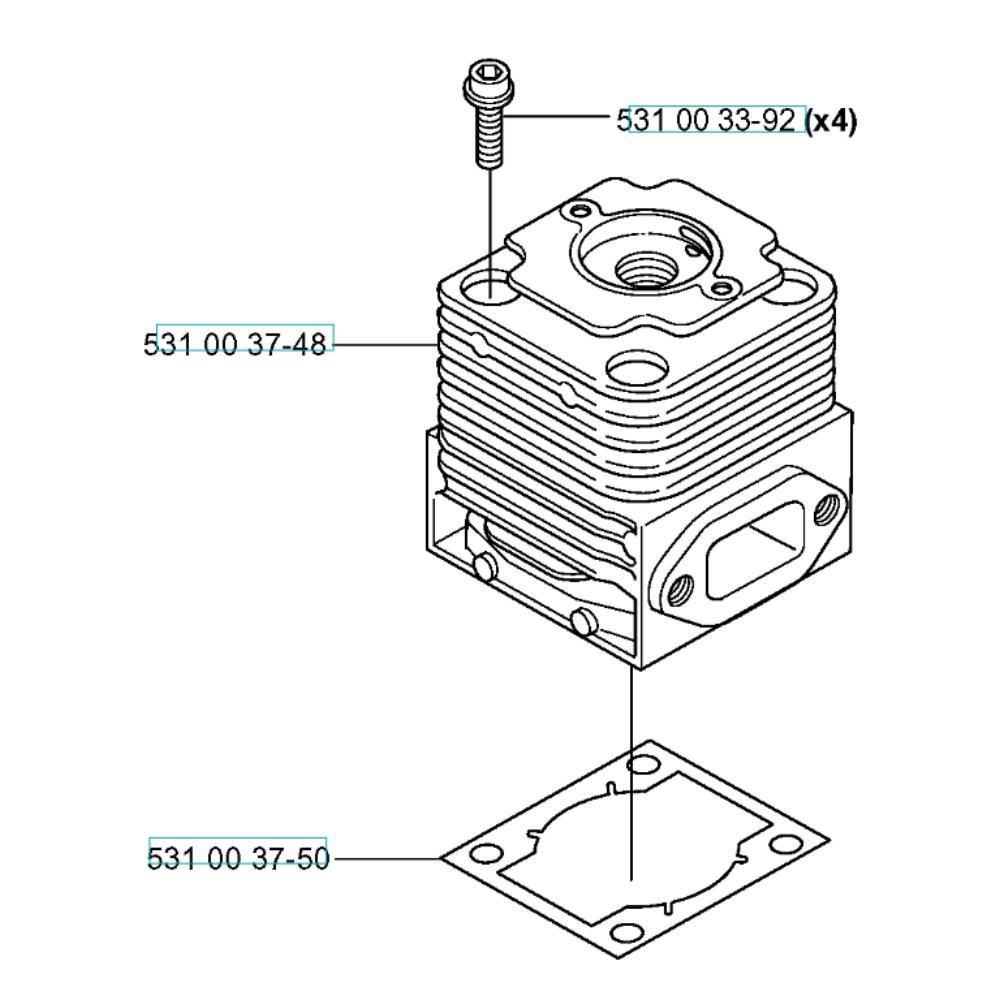 The Cylinder Assembly for the Husqvarna 165 BT Blower is designed to ensure optimal engine performance and longevity. This assembly includes essential components such as the cylinder, piston, and rings, which work together to maintain efficient combustion and power output. Genuine Husqvarna parts guarantee compatibility and reliability, making them ideal for routine maintenance and repairs.