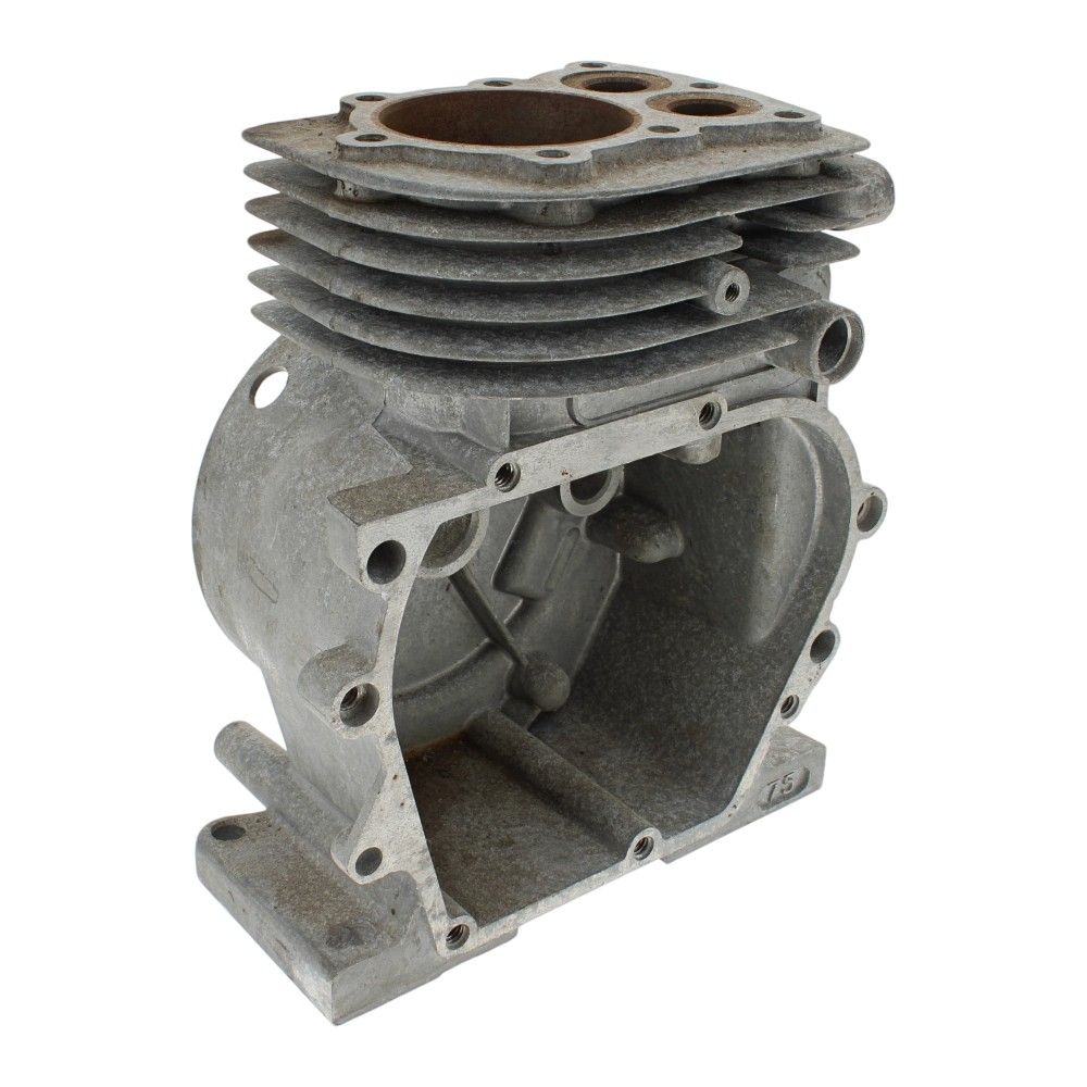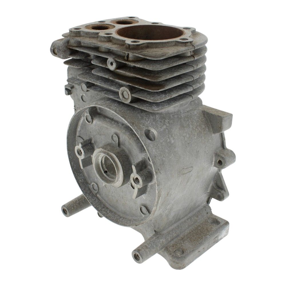 This Cylinder & Crankcase assembly is a Genuine Villiers component for the 75cc Lightweight engine (OEM No. A60062). It forms the core of the engine, housing the cylinder barrel and the crankshaft within a rigid, accurately machined casting. Built from durable cast metal for strength and stability, it restores correct alignment of internal moving parts and provides a sound sealing surface for gaskets and covers. Suitable for vintage garden and light construction machinery powered by the Villiers 75cc Lightweight, it is ideal for maintenance or full restoration work where authenticity and proper fit are essential. Supplied as unused old stock, it may show minor tarnishing or storage marks, but remains mechanically sound for dependable rebuilds on classic equipment.