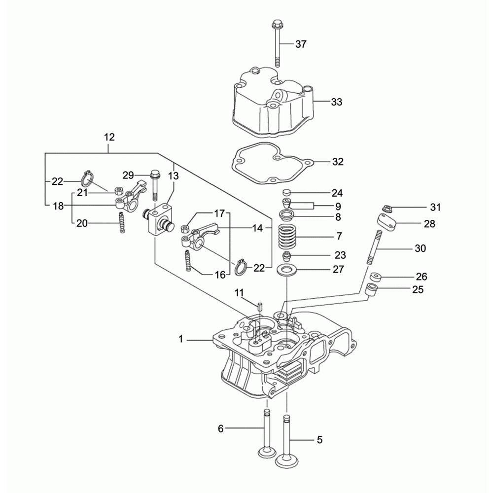The Cylinder Head Assembly for the Wacker VP2050Y Compactor is crucial for optimal engine performance. This assembly includes components that ensure efficient compression and combustion, vital for the machine's operation. Genuine Wacker Neuson parts are used to maintain reliability and longevity. Available components may include valves, springs, and seals, designed to fit perfectly with the VP2050Y model.