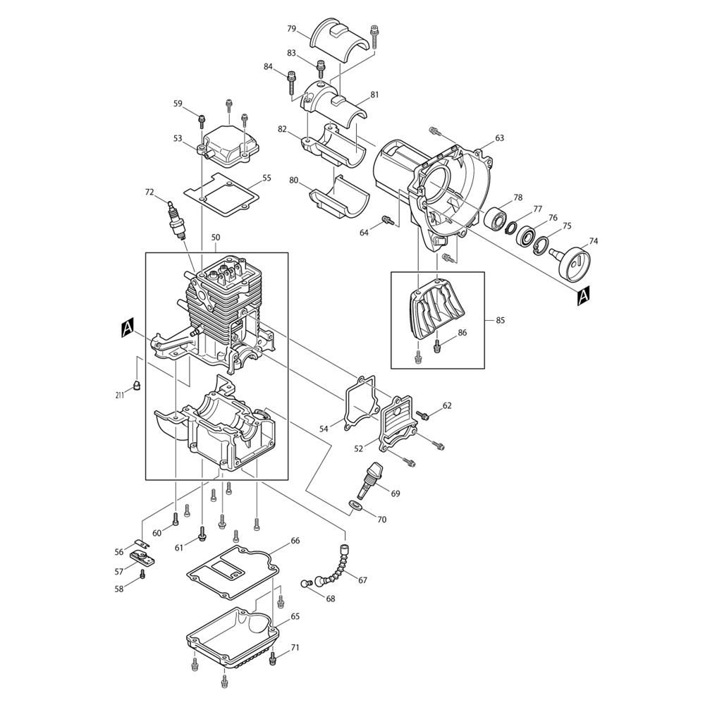 The Cylinder and Oil Gauge Assembly for the Makita BCX2500 Brushcutter includes key components essential for optimal performance and longevity. This assembly ensures efficient operation by maintaining proper oil levels and cylinder function. Components such as gaskets, seals, and gauges are included, designed to fit seamlessly with the Makita BCX2500 model.