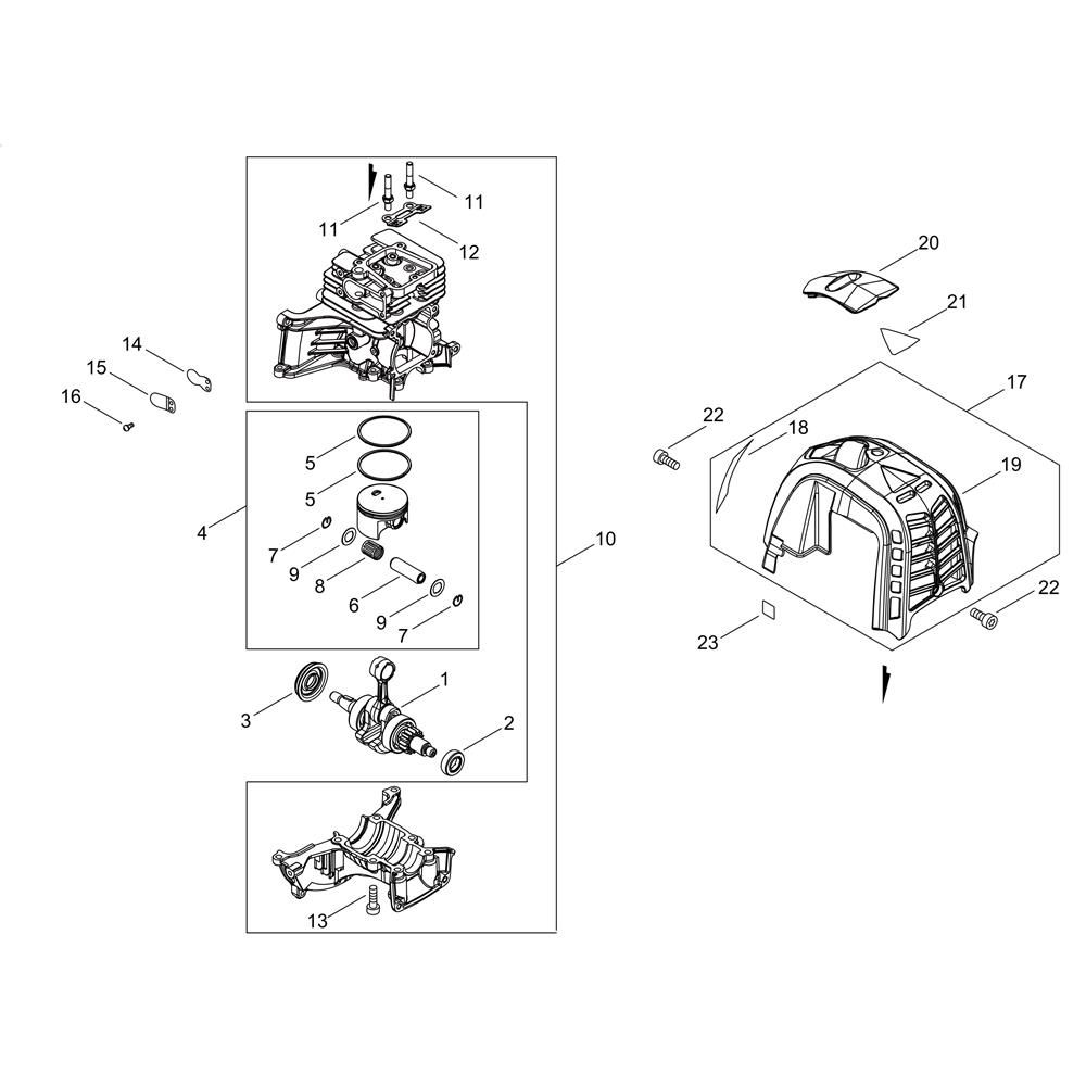 The Cylinder, Piston, and Crankshaft assembly for the ECHO SRM-3610T/U Brushcutter is crucial for engine performance. These components work together to ensure efficient combustion and power delivery. Options include genuine and non-genuine parts, allowing for tailored maintenance and repair solutions.
