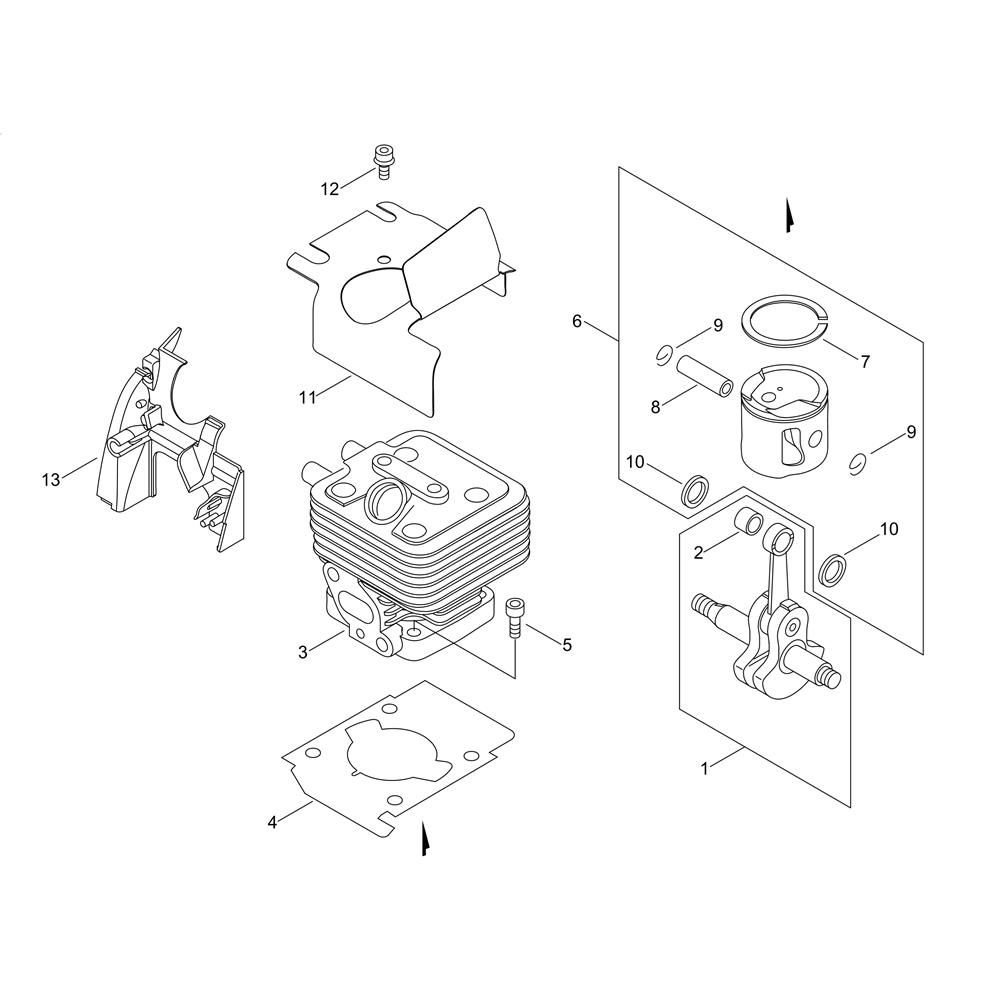 The Cylinder, Piston, and Crankshaft set for the Shindaiwa EBS256S Blower ensures optimal engine performance and longevity. These genuine Shindaiwa parts are designed to fit precisely, maintaining the blower's efficiency and reliability. The assembly includes key components that are essential for the smooth operation of the blower, reducing wear and tear and enhancing durability.