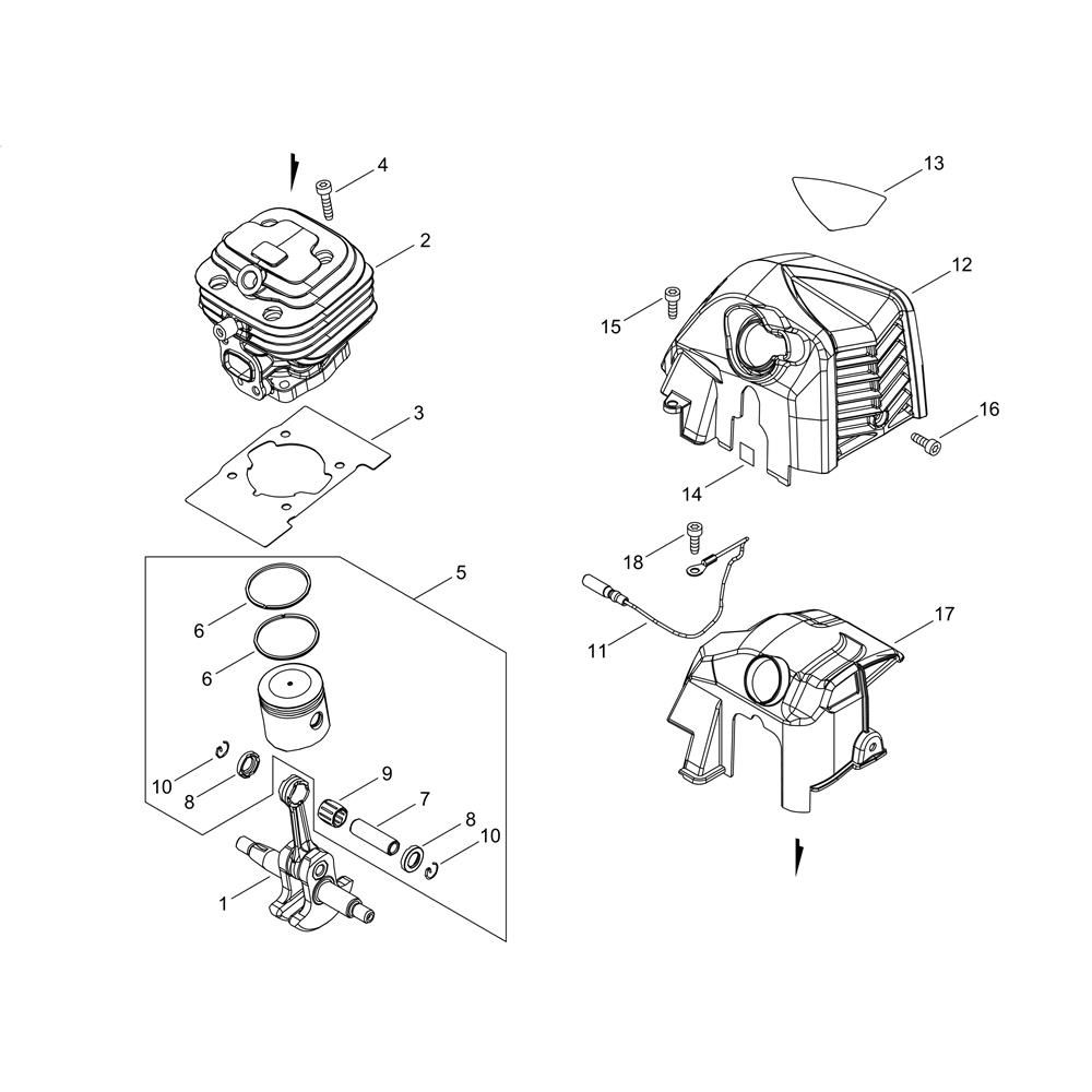 The Cylinder, Piston, and Crankshaft set for the Shindaiwa T302TS Brushcutter ensures optimal engine performance and longevity. These components are crucial for maintaining efficient combustion and power transfer. Genuine Shindaiwa parts, designed for precise fit and function, are available to support routine maintenance and repair needs.