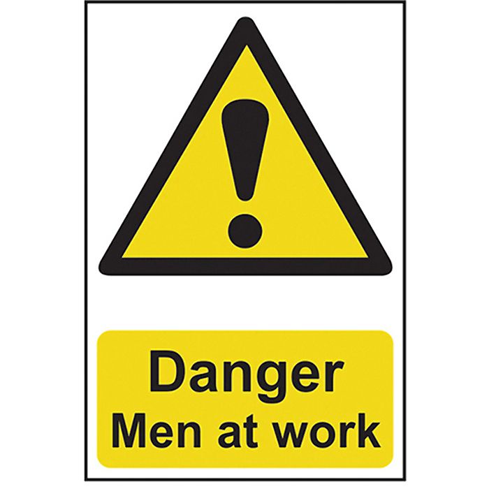Message: 'Danger Men at work'.