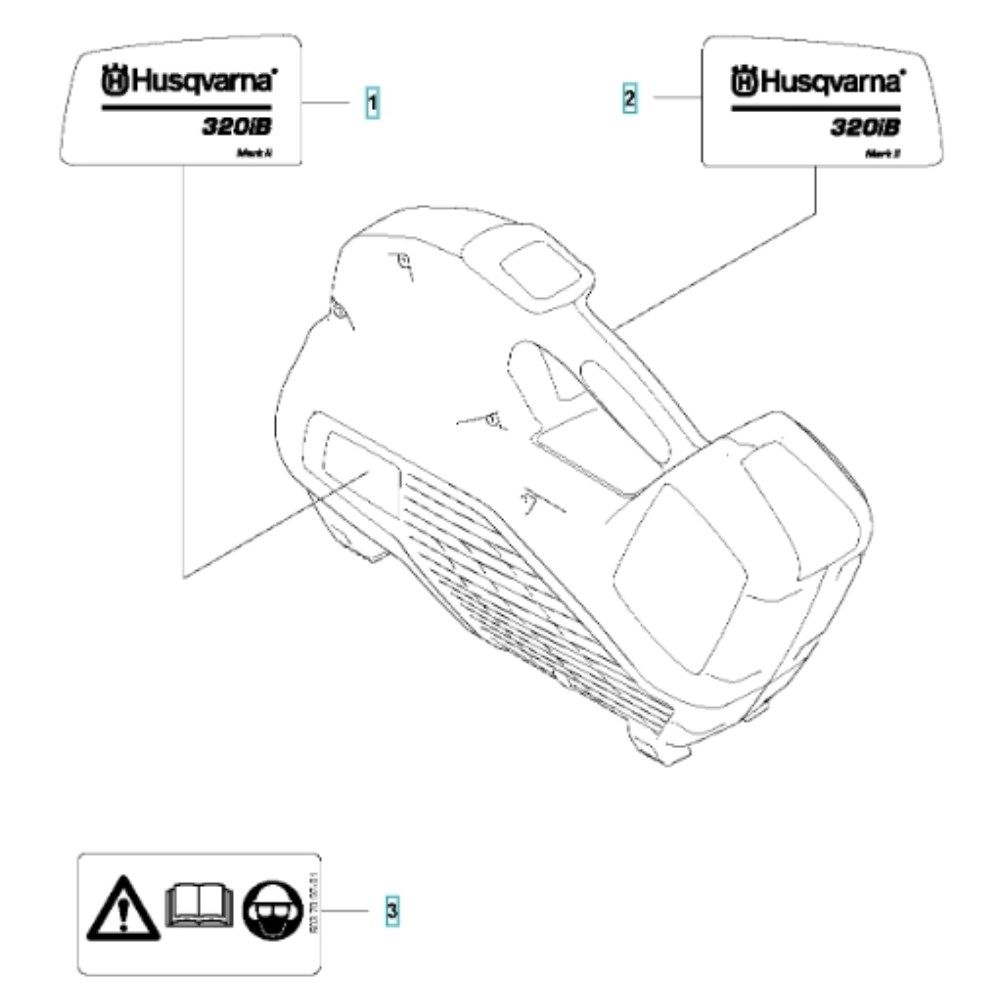 Decals designed for the Husqvarna 320iB Mark II Battery Blower enhance the appearance and ensure proper identification of your equipment. Available in both genuine and non-genuine options, these decals are crafted to fit perfectly and withstand outdoor conditions. Ideal for replacing worn or damaged labels, they help maintain the blower's professional look and compliance with safety standards.