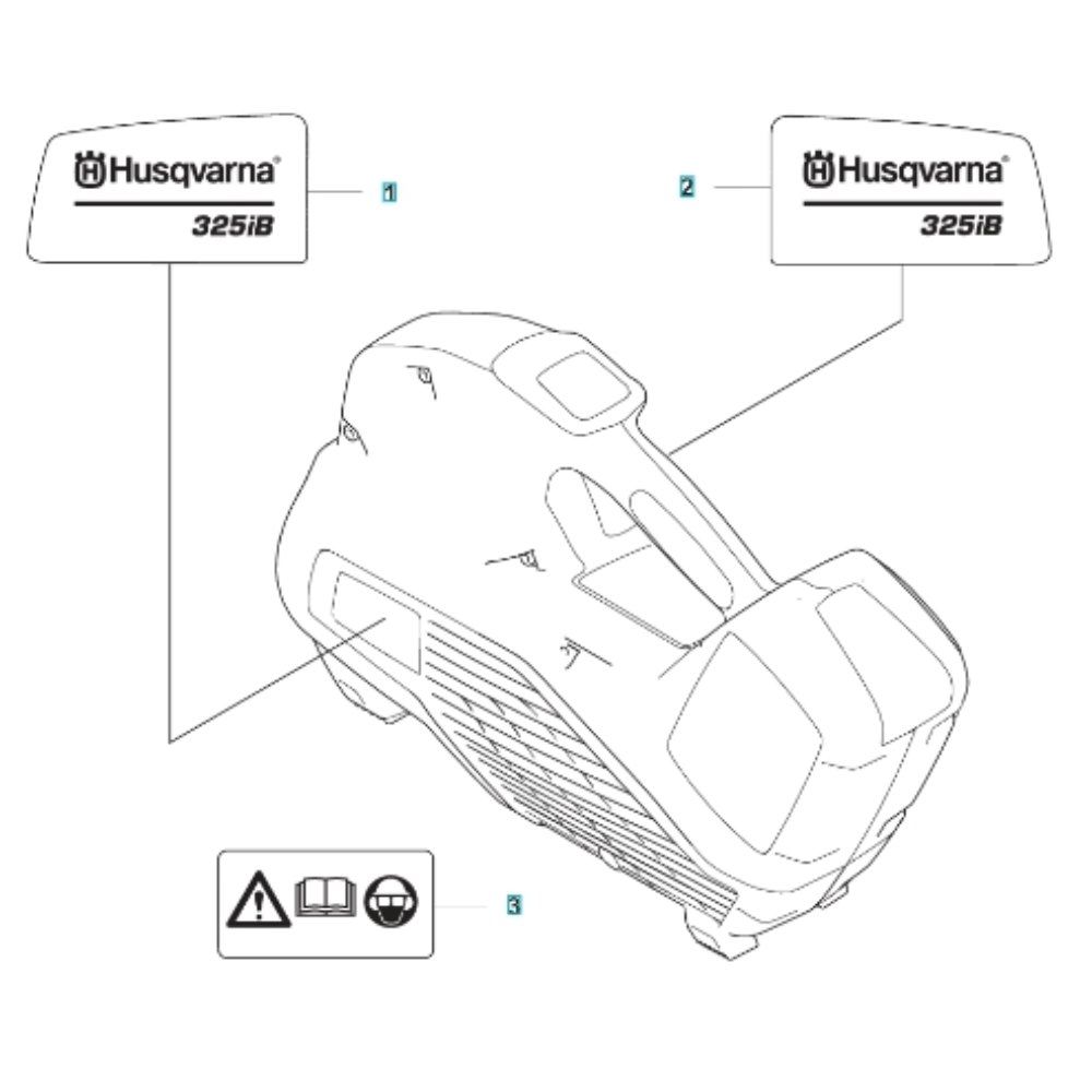Decals designed for the Husqvarna 325iB Battery Blower, available in both genuine and non-genuine options. These decals are essential for maintaining the appearance and brand integrity of your blower. They ensure that all necessary safety and operational information is clearly visible, contributing to safe and efficient use of the equipment.