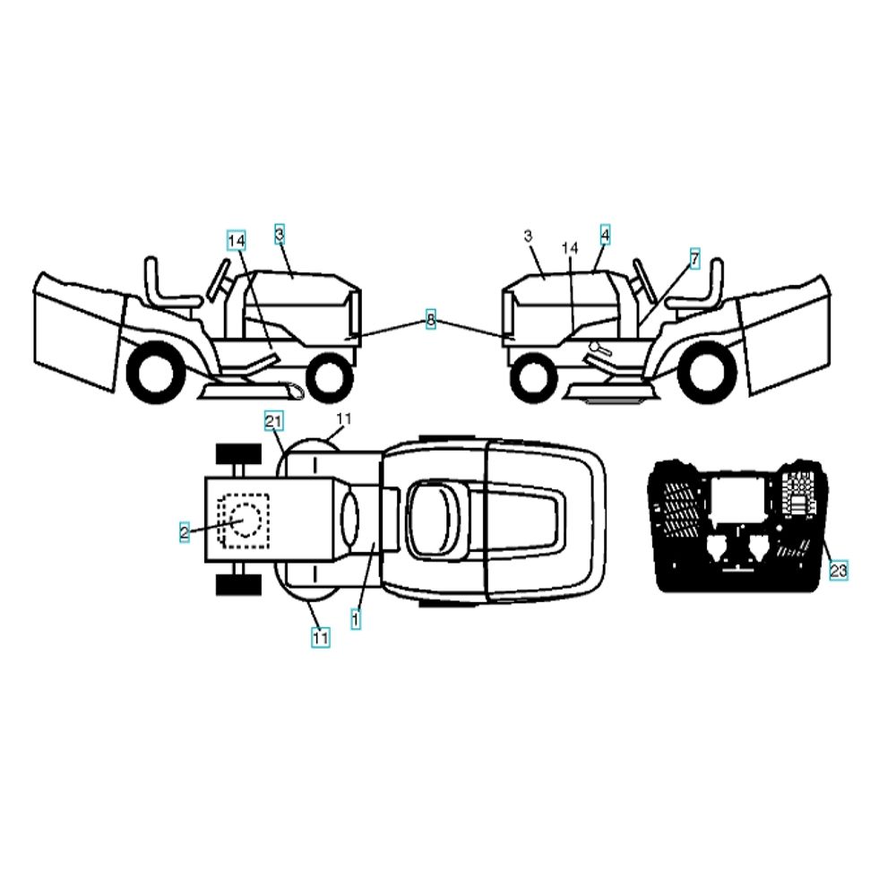 Decals for Husqvarna CTH 194 Ride-On Mowers are available to enhance the appearance and ensure proper identification of your equipment. These decals include both genuine and non-genuine options, providing flexibility for various preferences and budgets. Ideal for maintaining the original look or updating worn-out labels, these decals are essential for clear visibility and safety compliance.