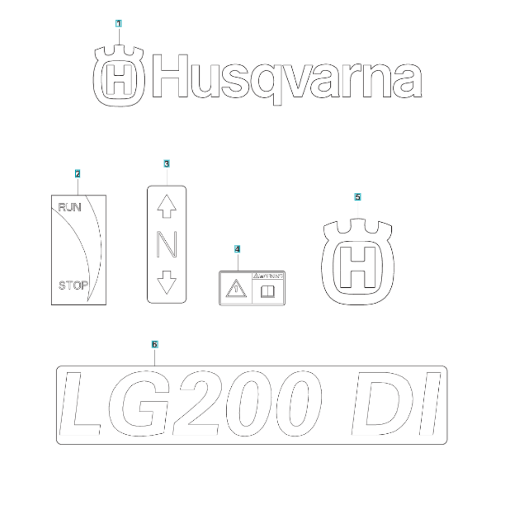 Decals for the Husqvarna LG 200 Reversible Compactor are essential for maintaining the machine's appearance and ensuring safety information is visible. These genuine Husqvarna parts are designed to withstand outdoor conditions and frequent use. Available in various designs to suit different machine specifications, they help keep your equipment compliant and professional-looking.