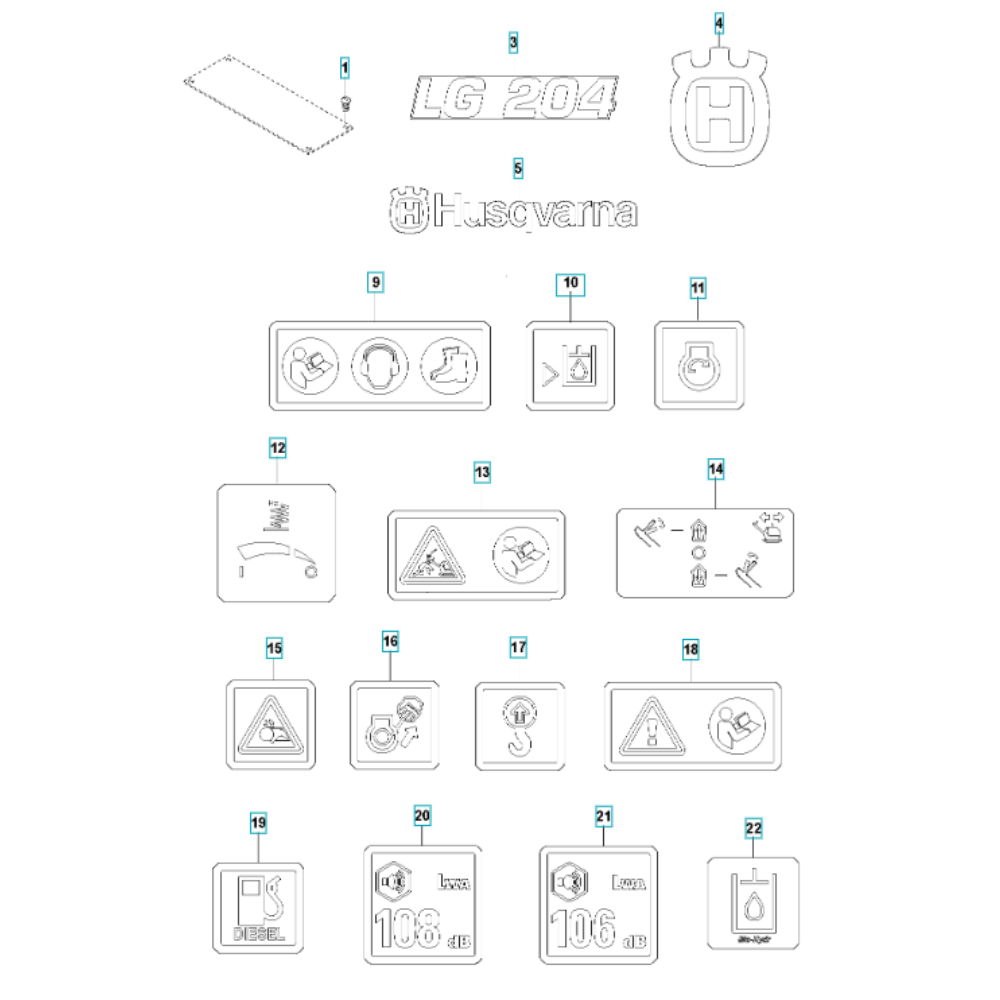 Decals for the Husqvarna LG 204 Petrol Reversible Compactor ensure clear identification and safety information. These genuine Husqvarna parts are designed to withstand outdoor conditions, providing durability and longevity. Essential for maintaining the professional appearance and operational safety of your compactor, these decals are available in various designs and specifications.