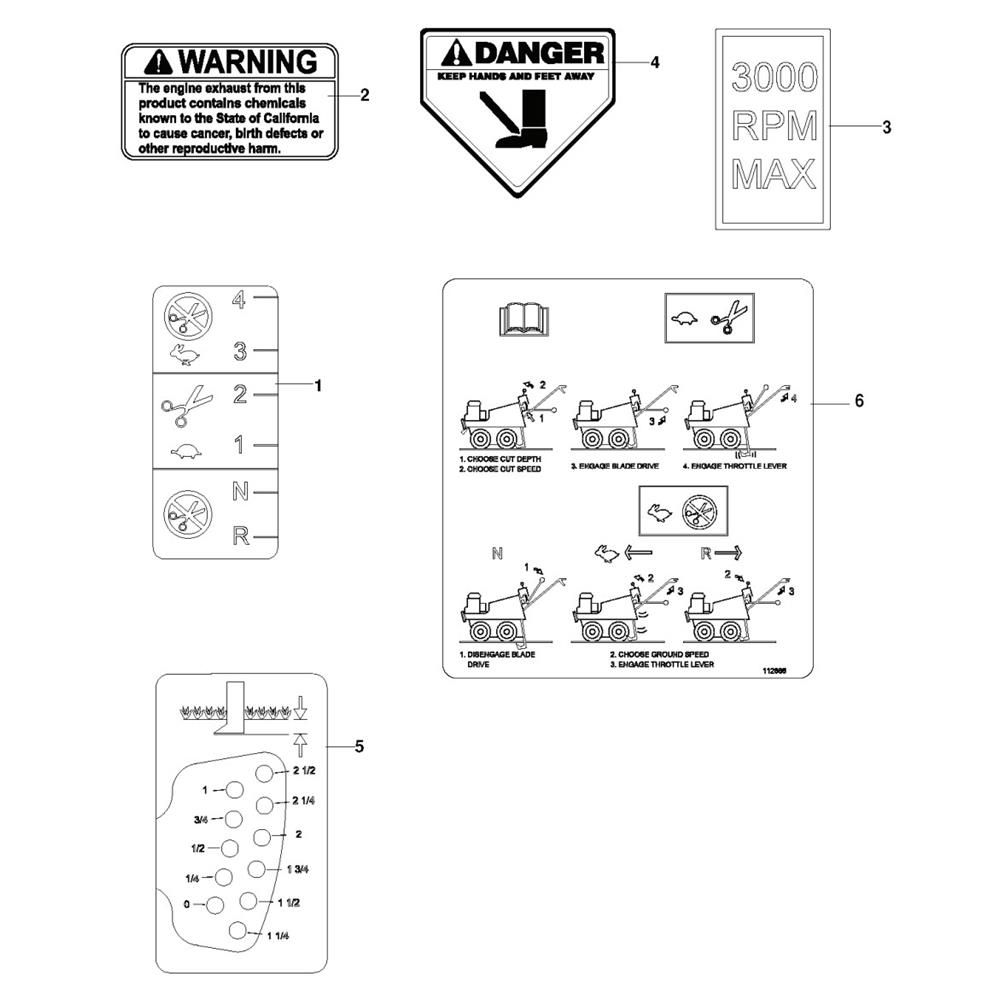 Decals for the Husqvarna SC18A Sod Cutter are essential for maintaining the machine's appearance and ensuring proper identification of controls and safety information. These genuine Husqvarna parts are designed to fit perfectly, providing clear and durable labels for various components. Ideal for replacing worn or damaged decals to keep your sod cutter in top condition.