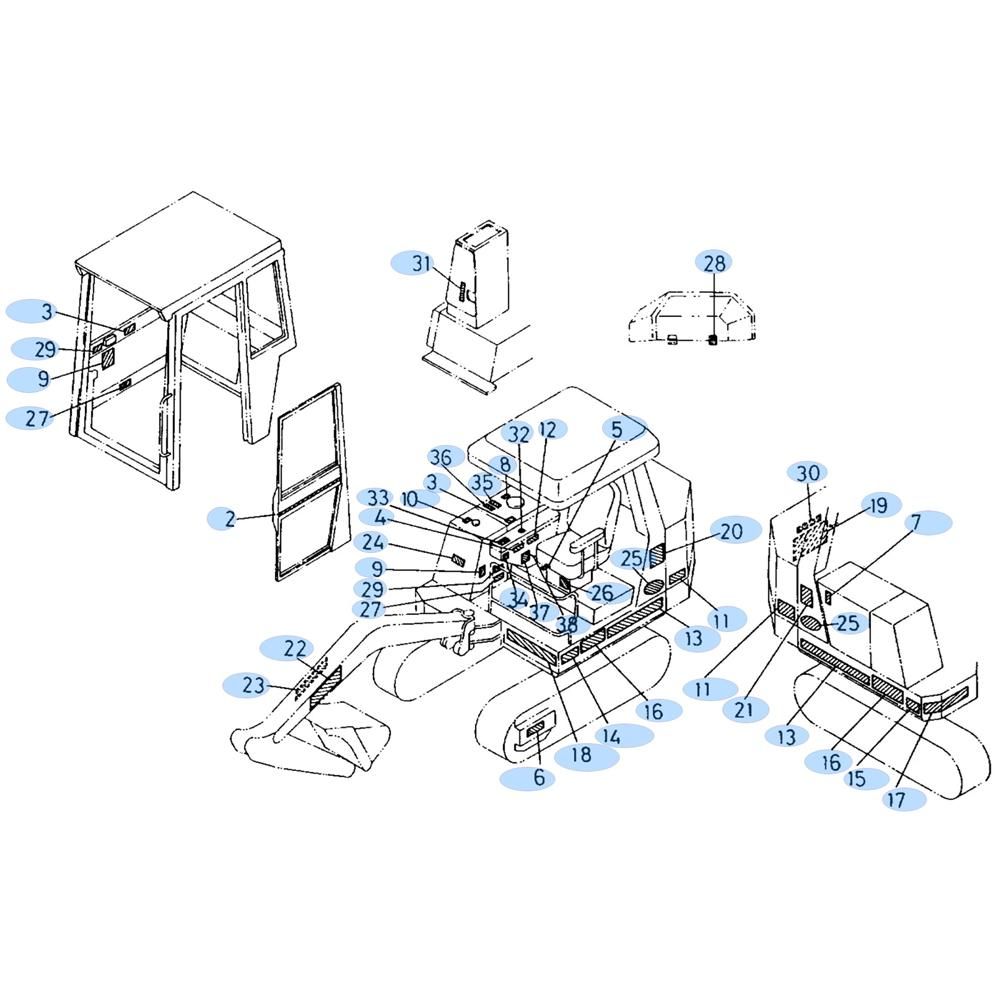 Decals for the Kubota KH60 Mini Excavator are genuine parts designed to maintain the machine's original appearance and ensure compliance with safety and operational standards. These decals are essential for clear identification and proper operation instructions, contributing to the excavator's professional upkeep.