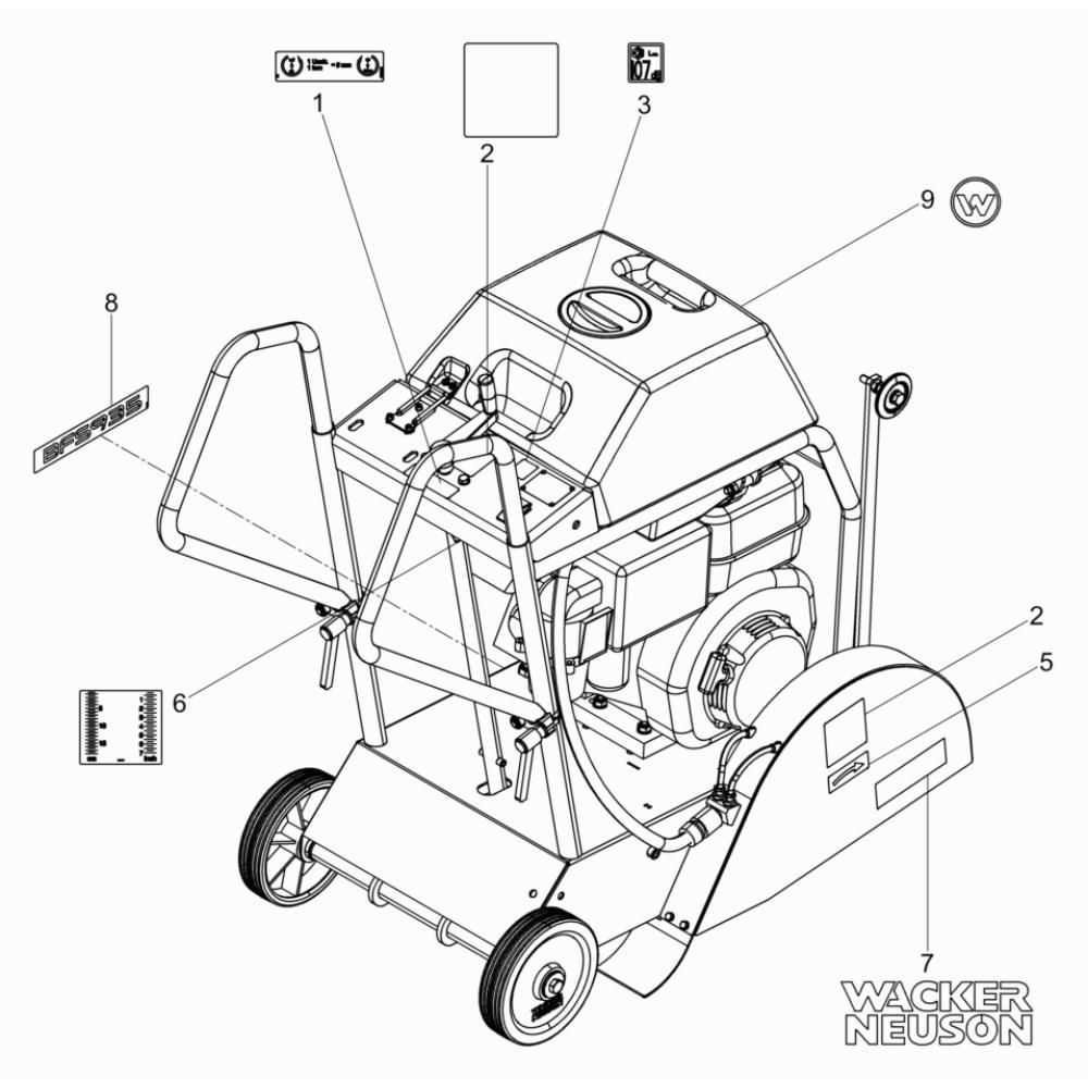 Decals designed for the Wacker BFS 935 Floor Saw ensure clear identification and safety compliance. These genuine Wacker Neuson parts are essential for maintaining the professional appearance and operational standards of your equipment. Available in various designs and sizes, they are tailored to fit specific areas of the floor saw, providing durability and resistance to wear.