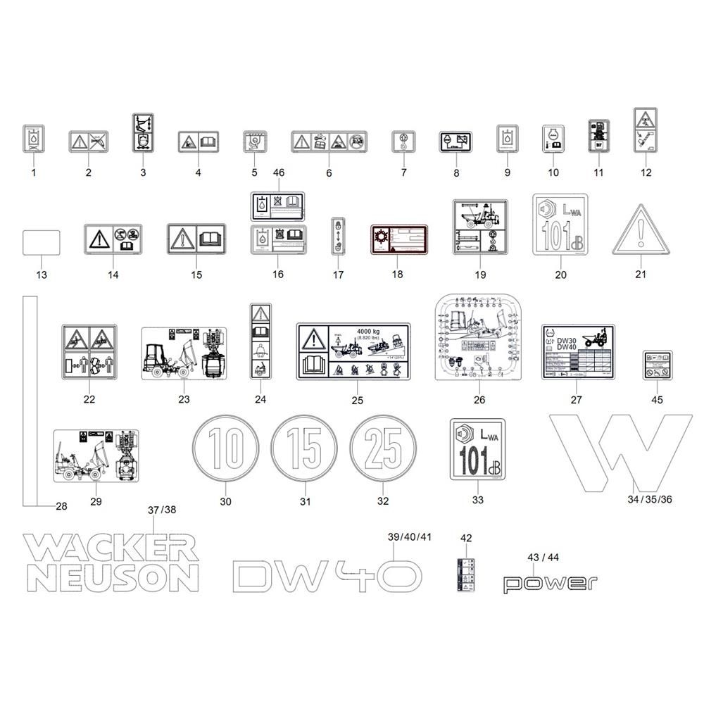 Decals for the Wacker DW40-2 Dumper are essential for maintaining the machine's appearance and ensuring safety information is visible. These genuine Wacker Neuson parts are designed to withstand outdoor conditions, providing durability and longevity. Available in various designs and sizes, they help keep your dumper compliant with safety standards and enhance its professional look.