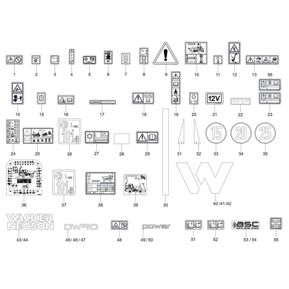 Decals for the Wacker DW90-3 Dumper are essential for maintaining the machine's appearance and ensuring safety information is clearly visible. These genuine Wacker Neuson parts are designed to fit perfectly and withstand the rigours of construction environments. Available in various designs and sizes to suit different applications.