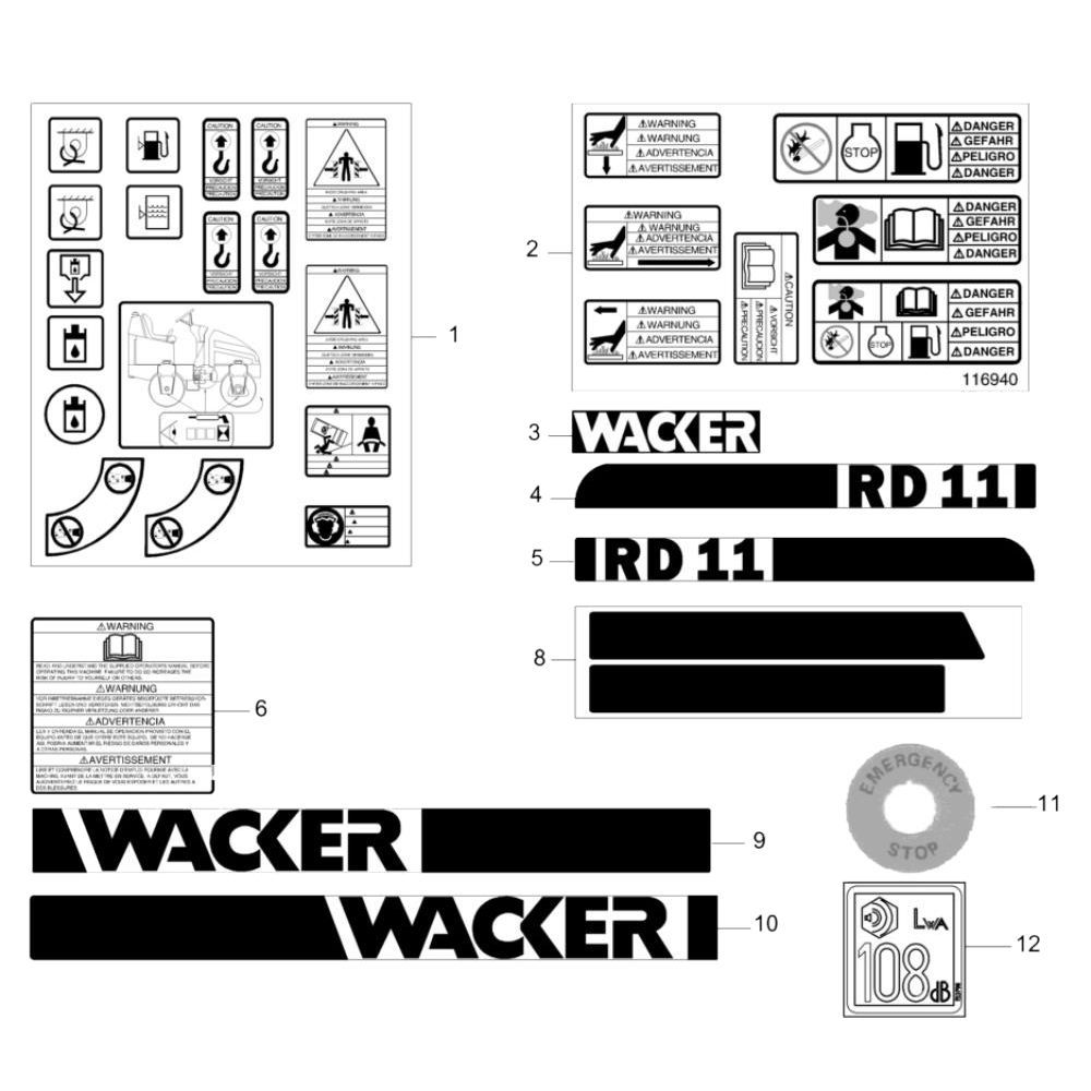 Decals for the Wacker RD11 Roller are essential for maintaining the machine's appearance and ensuring safety information is clearly visible. These genuine Wacker Neuson parts are designed to fit perfectly and withstand the rigours of construction environments. Available in various designs and sizes, they help keep your roller compliant with safety standards and enhance its professional look.
