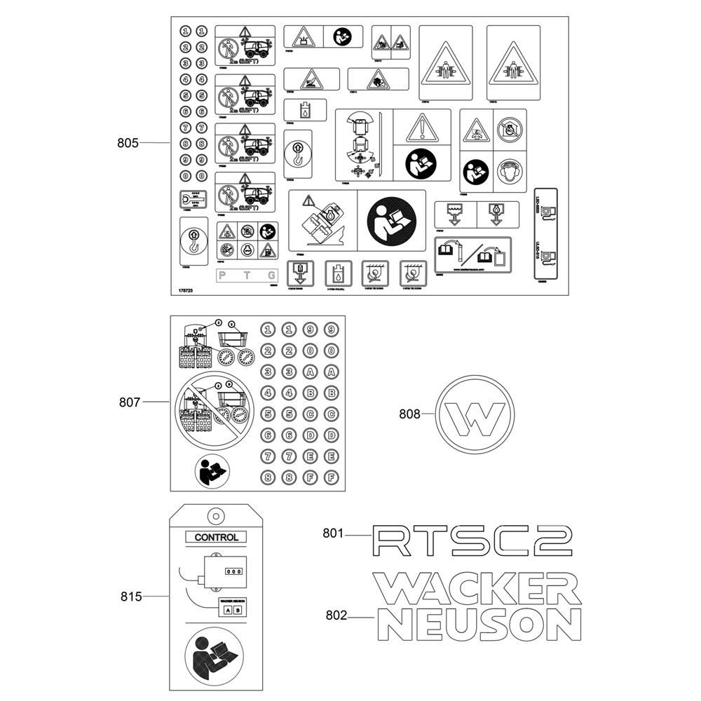 Decals for the Wacker RT82-SC2 Trench Roller are essential for maintaining the machine's appearance and ensuring proper identification. These genuine Wacker Neuson parts are designed to withstand harsh conditions and provide clear visibility. Ideal for replacing worn or damaged decals, they help maintain safety and compliance on site.