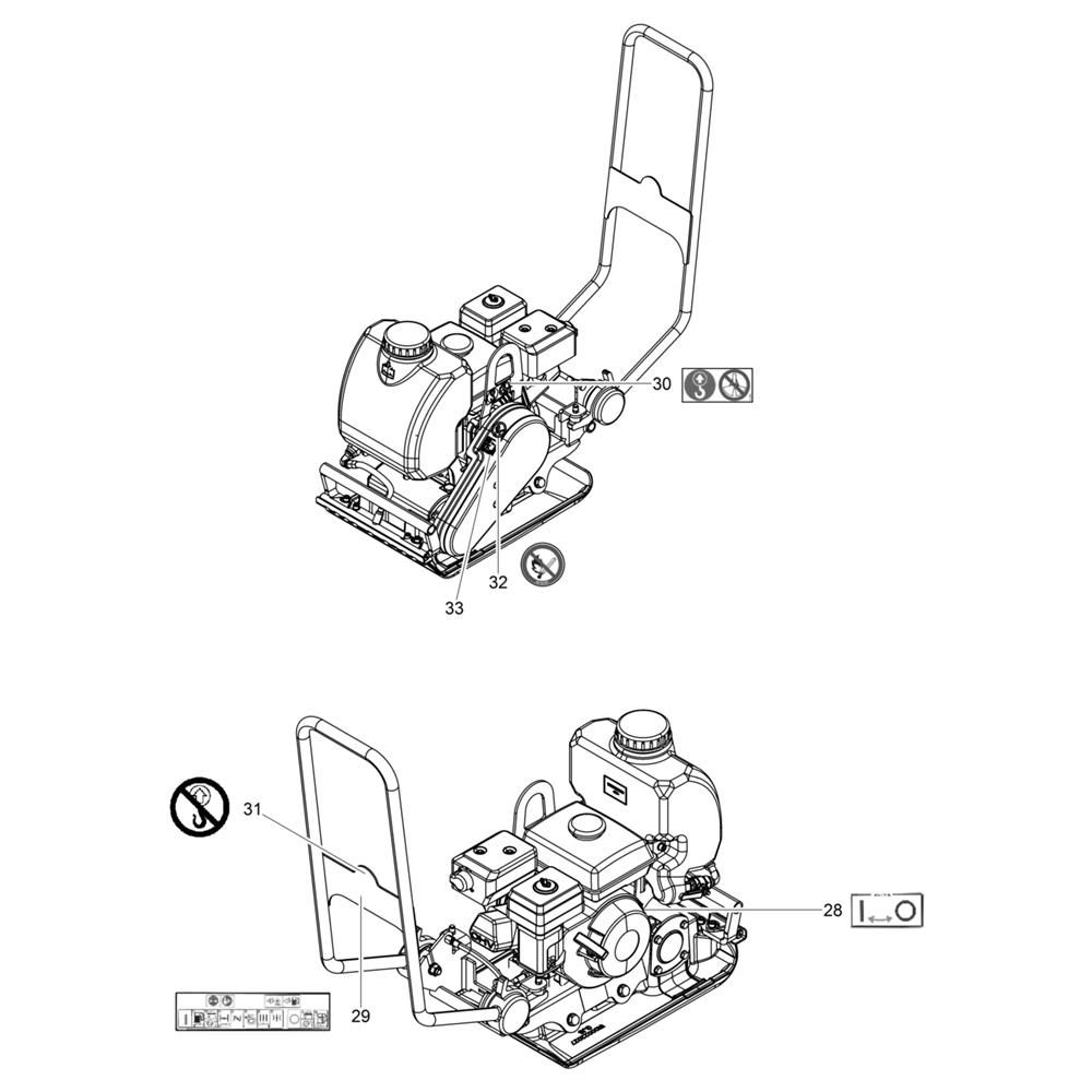 Decals for the Wacker VP1550Aw Compactor are essential for maintaining the machine's appearance and ensuring safety information is clearly visible. These genuine Wacker Neuson parts are designed to fit perfectly, providing durability and resistance to wear. Ideal for replacing worn or damaged decals, they help keep your compactor compliant with safety standards.