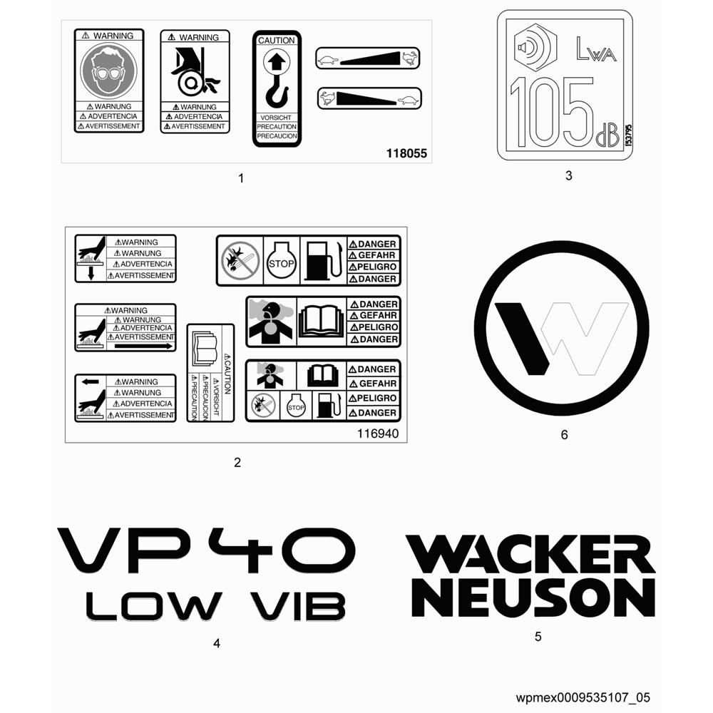 Decals for the Wacker VP40H Compactor are essential for maintaining the machine's professional appearance and ensuring safety information is clearly visible. These genuine Wacker parts are designed to fit perfectly and withstand the rigours of construction environments. Available in various styles to suit different needs, they help keep your equipment compliant and easily identifiable.
