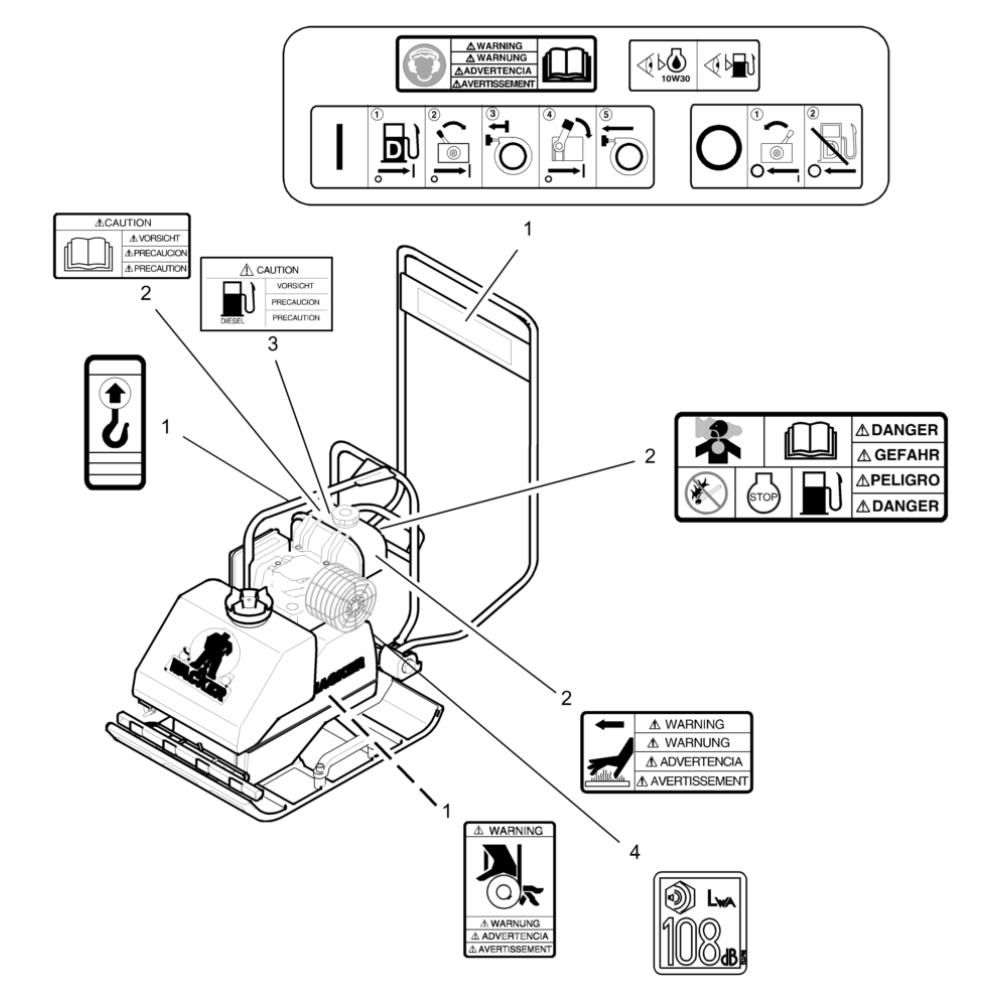 Decals for the Wacker VPY1740 Compactor are essential for maintaining the machine's professional appearance and ensuring compliance with safety standards. These genuine Wacker Neuson parts are designed to fit perfectly, providing clear and durable markings. Ideal for replacing worn or damaged decals, they help keep your compactor looking new and functioning safely.