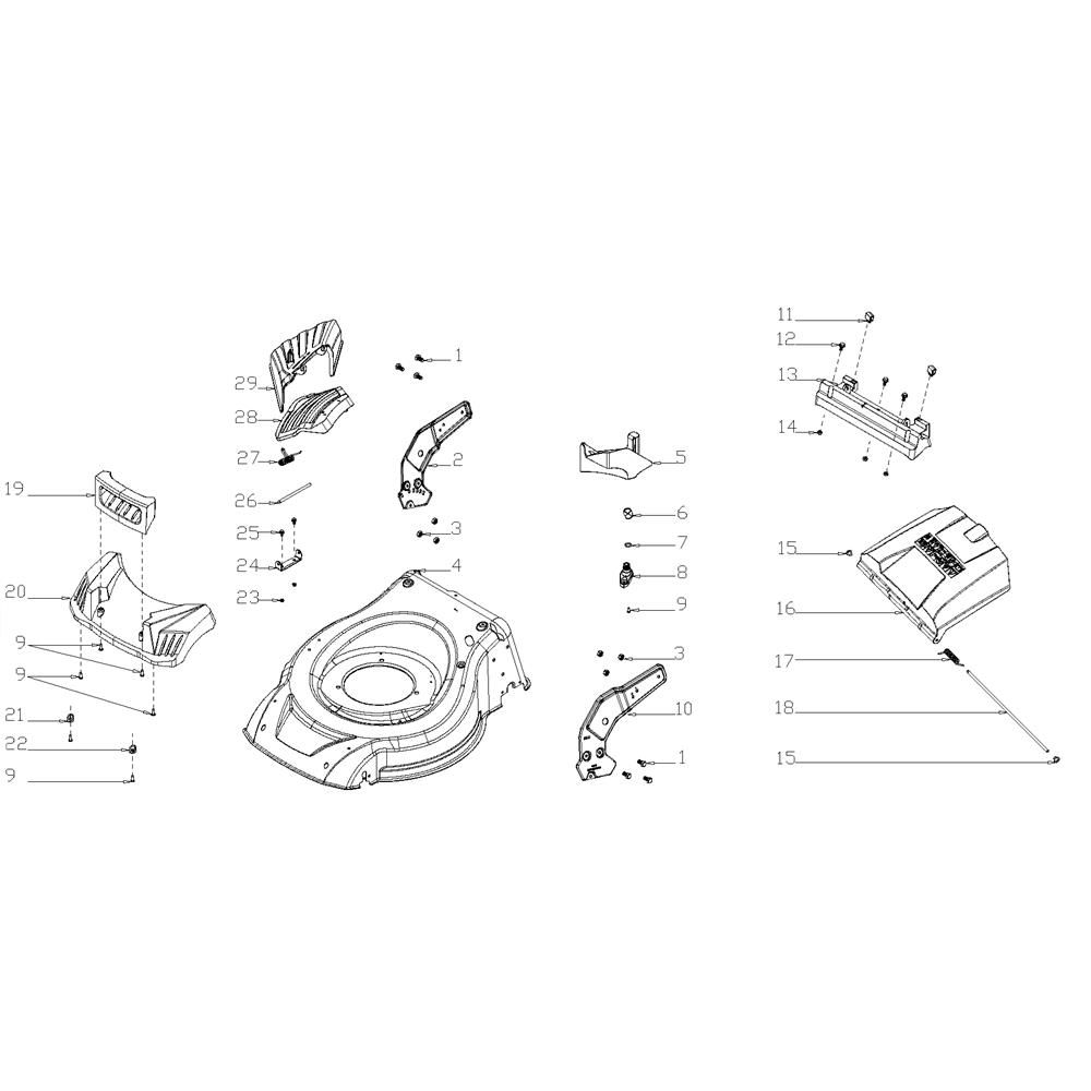 The Deck Assembly for the Harry LMG53SHLV-C Mower is designed to ensure optimal cutting performance and durability. This assembly includes key components such as the deck shell, blades, and mounting brackets, which work together to provide a smooth and efficient mowing experience. Regular maintenance of these parts can help extend the life of your mower and ensure a clean, even cut.