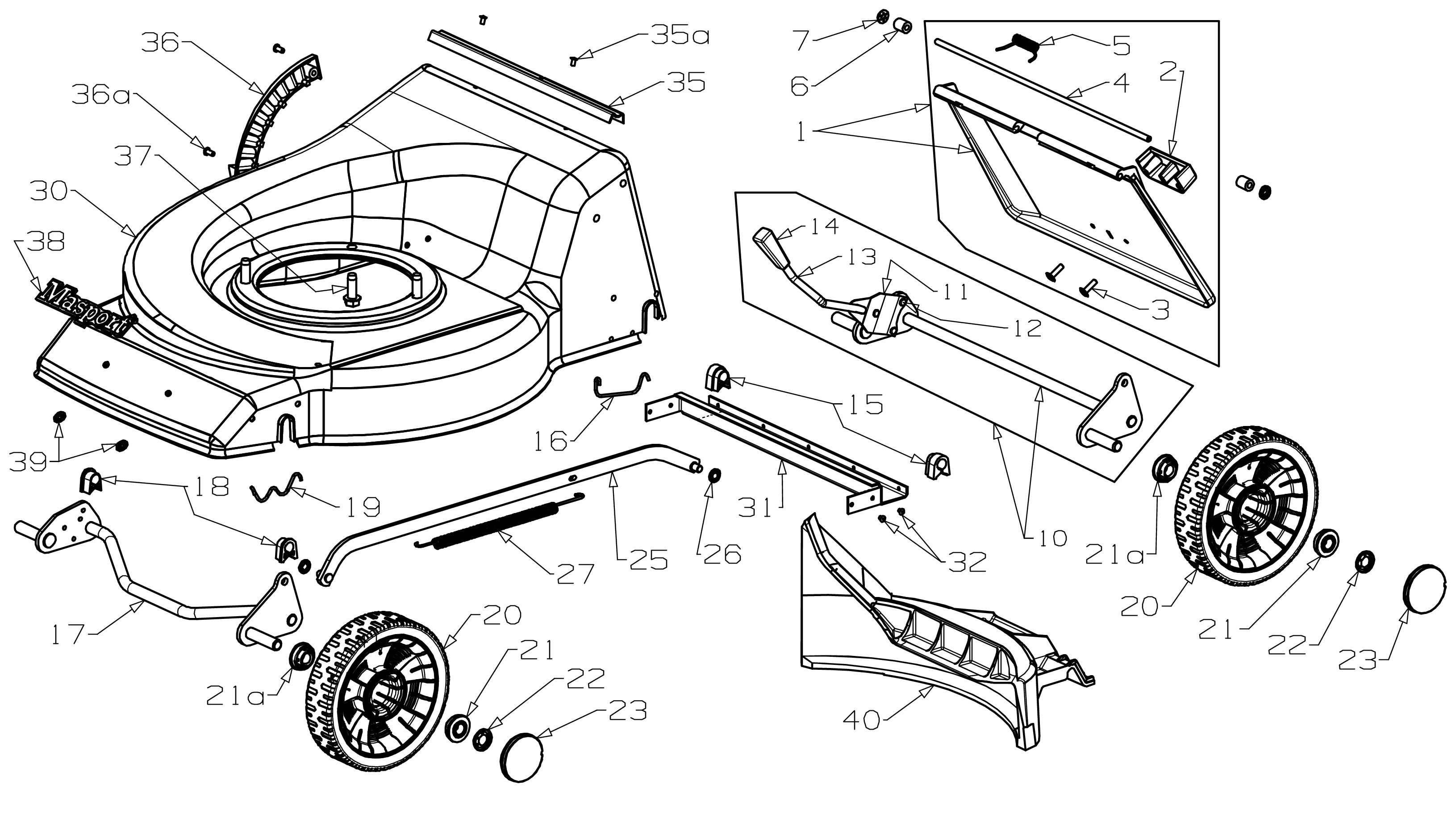 The Deck Assembly for the Masport 200ST (2015 Sep 48380) Mower includes key components to ensure efficient grass cutting and collection. This assembly is crucial for maintaining the mower's performance and longevity. Genuine Masport parts are used, providing reliability and compatibility. Components may include blades, belts, and pulleys, designed to fit seamlessly with the Masport 200ST model.