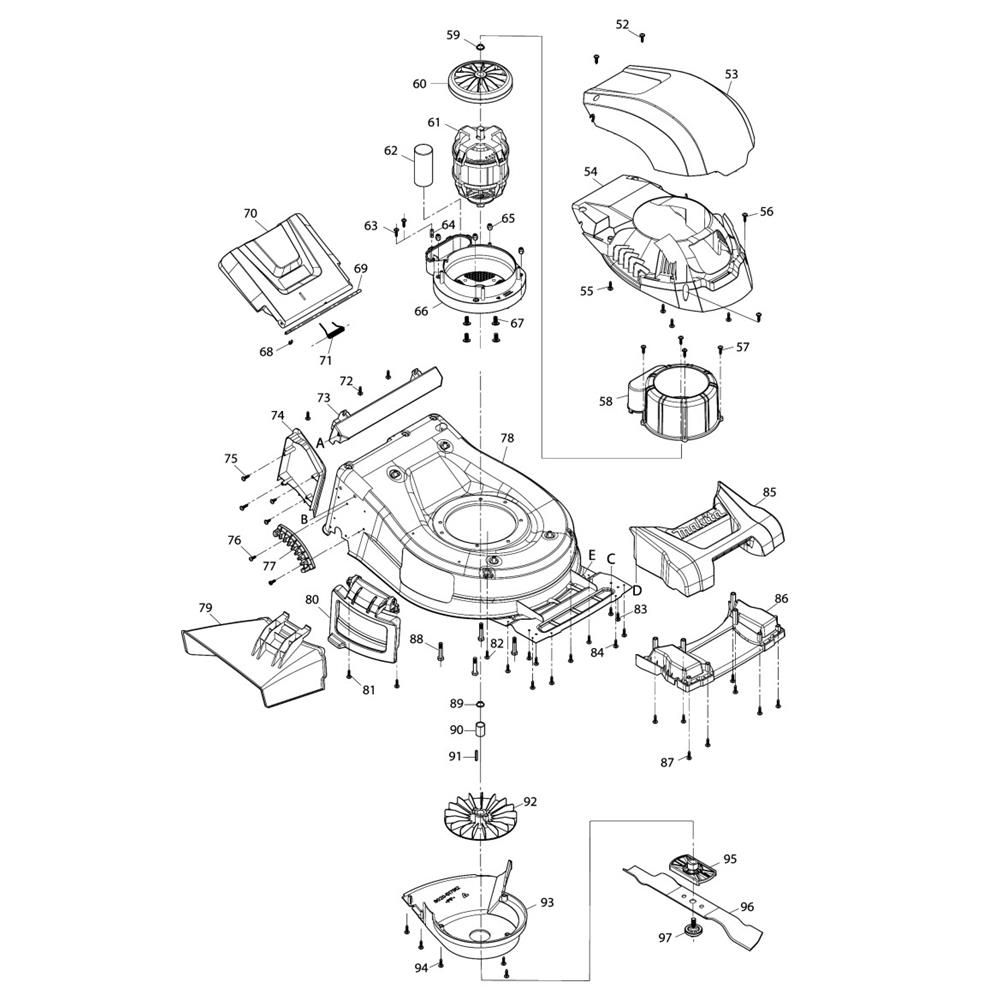 The Deck and Motor Assembly for the Makita ELM4620 Mower includes essential components for efficient lawn maintenance. This assembly ensures optimal performance by integrating the deck and motor, providing a seamless mowing experience. Genuine Makita parts are designed to fit perfectly, ensuring durability and reliability. Components may include belts, pulleys, and fasteners.