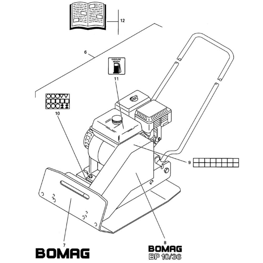 The Declas/ Manuals Assembly for Bomag BP 10/36 Compactors includes essential documentation and guides for effective operation and maintenance. This assembly ensures users have access to detailed instructions and specifications, facilitating proper use and servicing of the compactors. Genuine Bomag spare parts are included to support optimal performance.