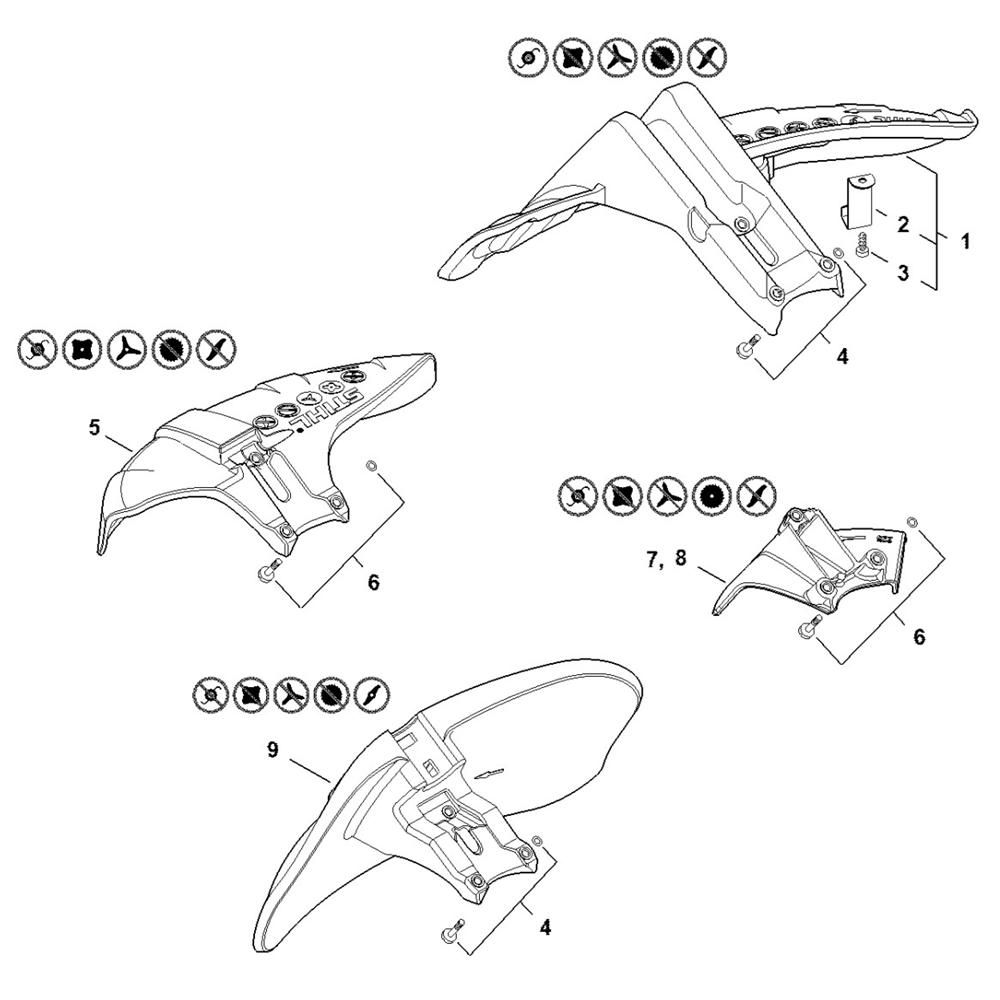 The Deflector Assembly for the Stihl FS461 C-EM Clearing Saw is designed to ensure optimal performance and safety. It helps direct debris away from the user, providing a cleaner and safer working environment. This assembly includes components such as guards and brackets, essential for maintaining the clearing saw's efficiency. Genuine Stihl parts ensure compatibility and durability.