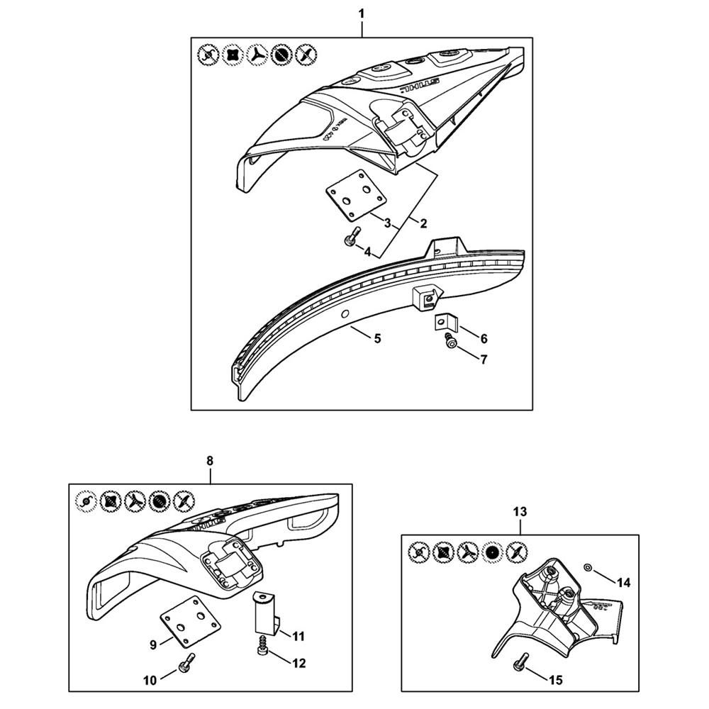 The Deflector Assembly for the Stihl FSA130R Cordless Trimmer is designed to ensure safe and efficient trimming by directing debris away from the user. This genuine Stihl component helps maintain optimal performance and prolongs the life of the trimmer. It includes essential parts such as guards and fasteners, tailored for the FSA130R model.