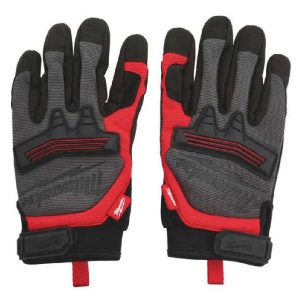 Milwaukee Demolition Gloves feature Armortex reinforced palms and fingertips for enhanced durability and protection. TPR pads offer extra knuckle safety, while the SMARTSWIPE Knuckle allows touch screen use without removing gloves. The breathable tri-cot lining ensures comfort, and a terry cloth thumb provides a convenient sweat wipe. Available in sizes 8 to 11.
