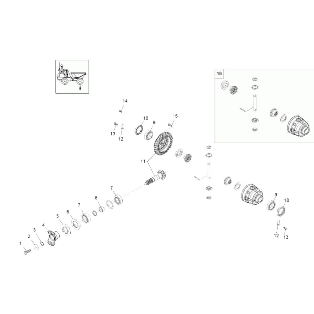 The Differential Axle (Front) Assembly for the Wacker 3001AE Dumper is crucial for optimal performance and manoeuvrability. This assembly includes components such as gears, bearings, and seals, ensuring efficient power distribution to the wheels. Designed for durability, it supports the dumper's load-bearing capabilities and enhances operational efficiency.