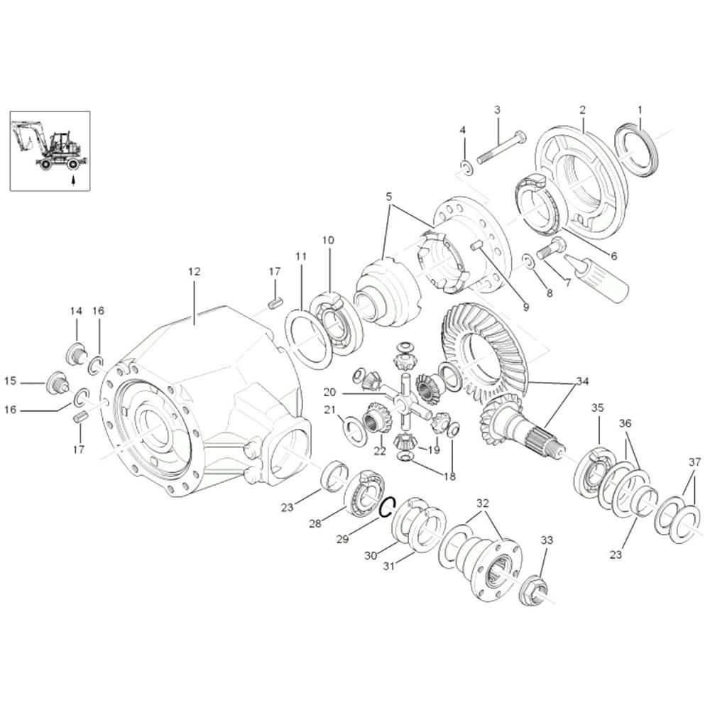 The Differential Rigid Axle (Rear) Assembly for the Wacker 6503 Excavator is designed to ensure optimal performance and durability. This assembly plays a crucial role in the excavator's drivetrain, providing stability and power distribution. Genuine Wacker Neuson parts ensure compatibility and reliability, with components such as gears, bearings, and seals available for maintenance and repair.