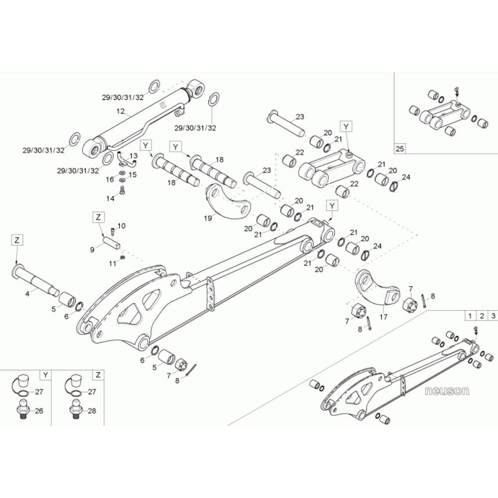 The Dipperstick Assembly for the Neuson 38Z3 Mini Excavator is essential for efficient digging and material handling. This assembly includes components such as pins, bushings, and hydraulic cylinders that ensure smooth operation and durability. Designed to fit the Neuson 38Z3 model, it supports optimal performance and longevity in demanding construction environments.