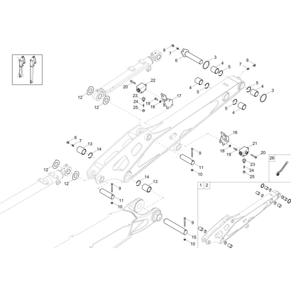 The Dipperstick (Long) Assembly for the Wacker ET42 Mini Excavator is designed to enhance the machine's digging capabilities. This assembly includes components such as pins, bushings, and hydraulic cylinders, ensuring efficient operation and durability. Ideal for construction and landscaping tasks, it supports precise excavation and material handling.