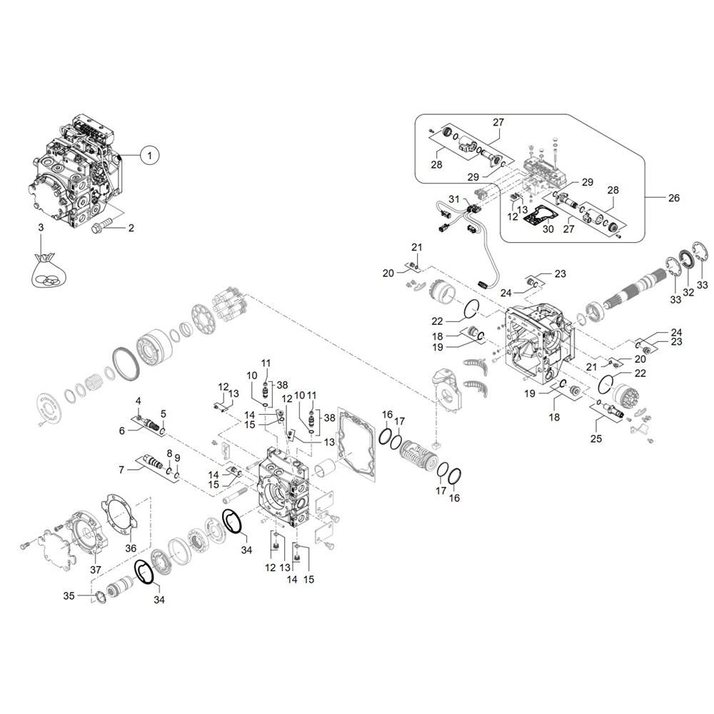 The Displacement Pump Assembly for the Wacker TH755 (416-14) Telehandler is crucial for efficient hydraulic operation. This assembly ensures optimal fluid movement within the system, supporting various telehandler functions. Genuine Wacker Neuson parts are included, such as seals, gaskets, and valves, to maintain performance and reliability.